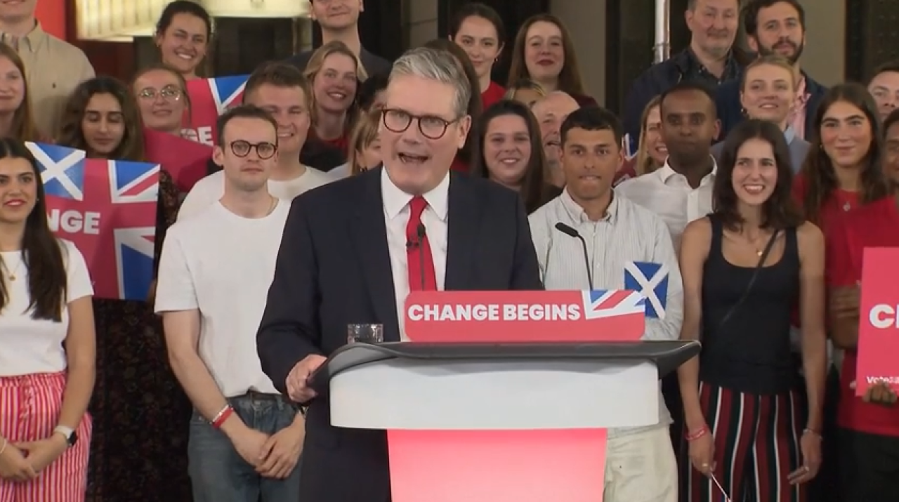 Keir Starmer konuşmasında, "Başardık! Bunun için kampanya yürüttünüz, bunun için mücadele ettiniz, bunun için oy verdiniz ve şimdi geldi. Değişim şimdi başlıyor. Dürüst olmak gerekirse iyi hissettiriyor. Dört buçuk yıllık çalışma partiyi değiştiriyor. İşte bunun için: ülkemize hizmet etmeye hazır, Britanya'yı yeniden emekçilerin hizmetine sunmaya hazır, değişmiş bir İşçi Partisi." dedi.