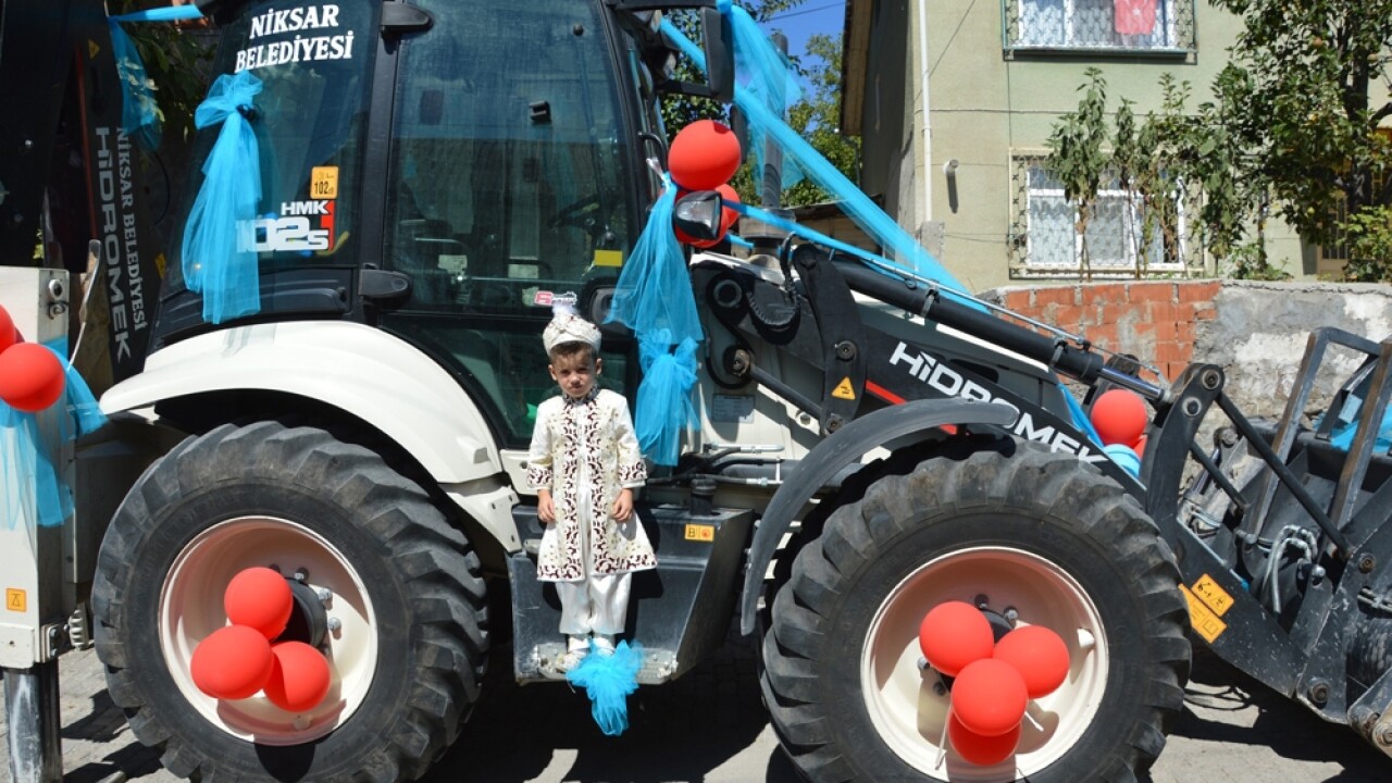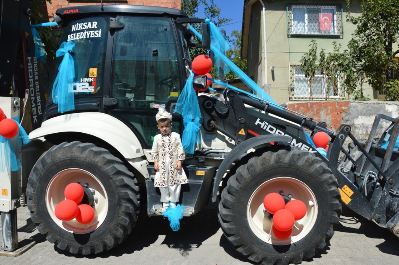 Tokat’ın Niksar ilçesinde 5 yaşındaki Hasan Pelit’in sünnet arabası, bir iş makinesi oldu.