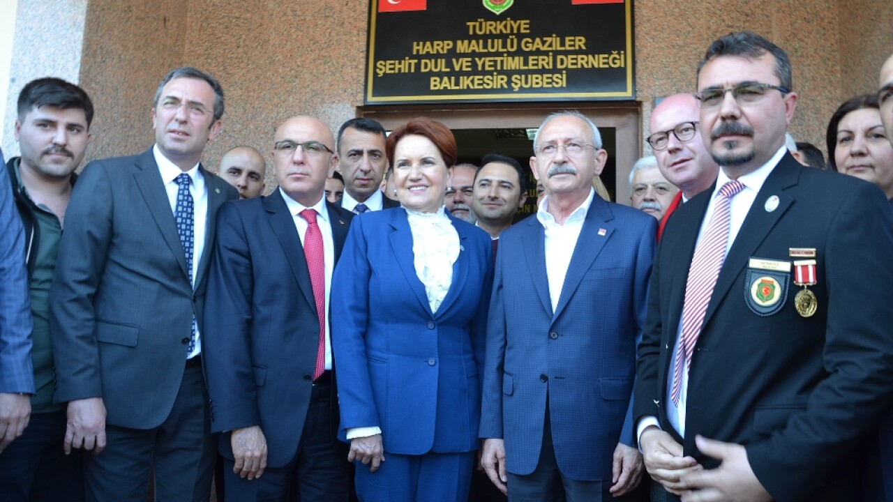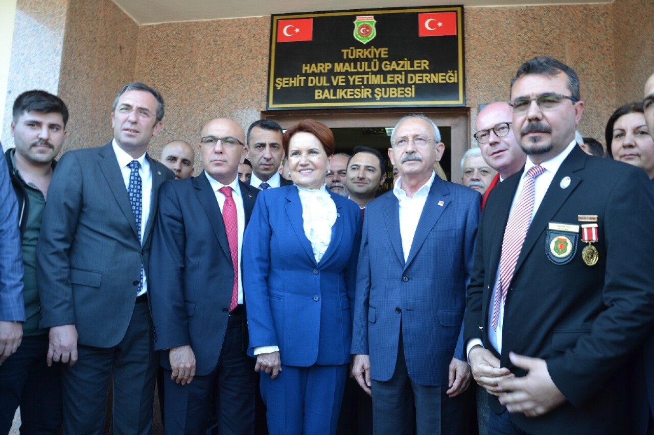 CHP Genel Başkanı Kemal Kılıçdaroğlu ve İYİ Parti Genel Başkanı Meral Akşener, Balıkesir’de düzenlenen miting öncesinde Türkiye Harp Malulü Gaziler Şehit Dul ve Yetimleri Derneğini ziyaret etti.