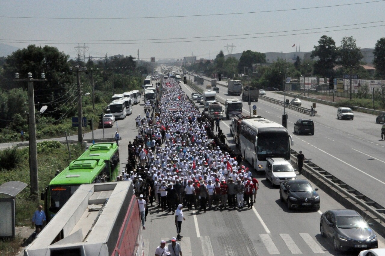 CHP Genel Başkanı Kılıçdaroğlu, partisinin İstanbul Milletvekili Enis Berberoğlu’nun tutuklanmasının ardından başlattığı ‘Adalet Yürüyüşü’nün 16. gününde yürümeye devam ediyor. Saat 10.00’da vermiş olduğu ilk molanın ardından saat 10.30’da yürüyüşe devam eden Kılıçdaroğlu, ikinci mola adresi olan Sakarya 2. Organize Saniyii’nin karşısındaki alana ulaştı. Kılıçdaroğlu, burada mola verdi. Molanın ardından Kılıçdaroğlu’nun saat 17.00’de yürümeye devam etmesi planlanıyor. Kılıçdaroğlu, yürüyüş sırasında kendisine destek verenleri alkışlar ile selamladı.