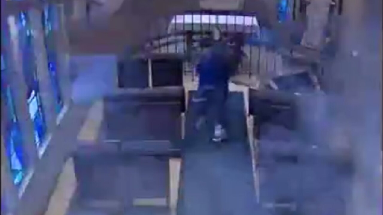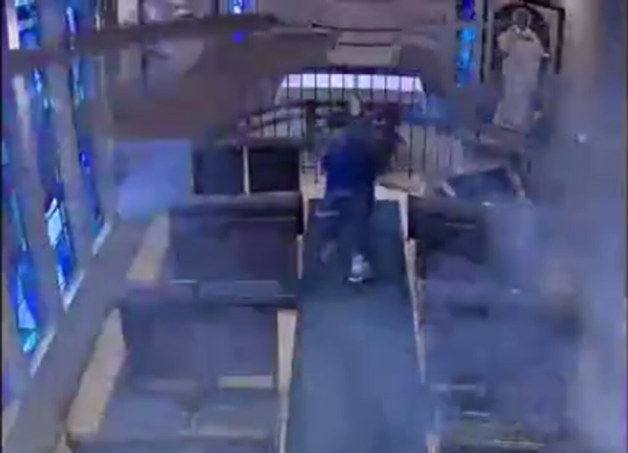 Görüntülerde, kiliseye giren bir adamın yanında getirdiği havai fişeğin fitilini yaktıktan sonra hızla kaçtığı görülüyor. Bu sırada kilisede bulunanlar ne olduğunu anlamadan havai fişek patlıyor. İçeridekiler büyük panik yaşarken o anlar güvenlik kameralarına yansıyor.