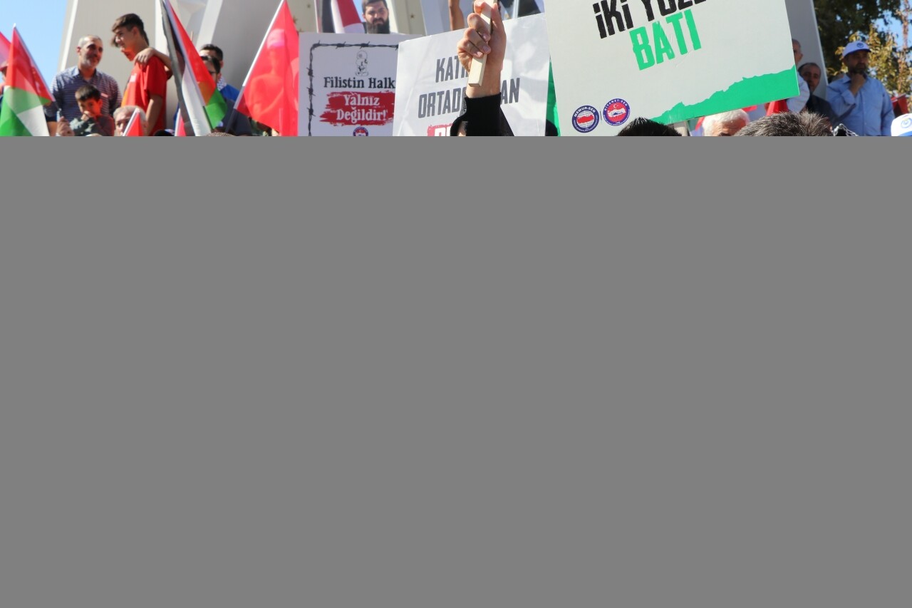 Burada grup adına basın açıklamasını okuyan Sivil Toplum Platformu Sözcüsü Veysel Aşkın, çocukları öldürmeyi itikatlarının gereği sayan devlet görünümlü sapkın İsrail'in, emperyalist sistemin koruması altında bölgeyi kan gölüne çevirdiğini ve soykırım siyasetini bütün bölgeye yaydığını dile getirdi.