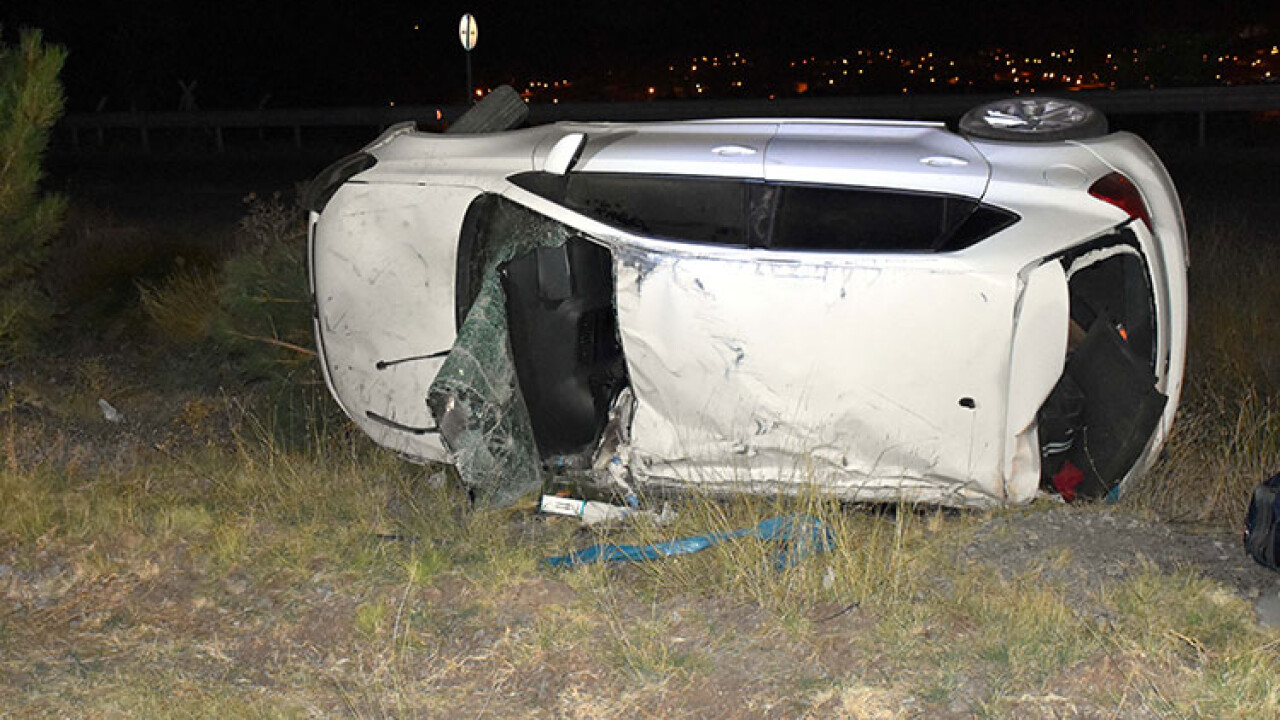 Kırıkkale'de devrilen otomobildeki 2 kişi yaralandı