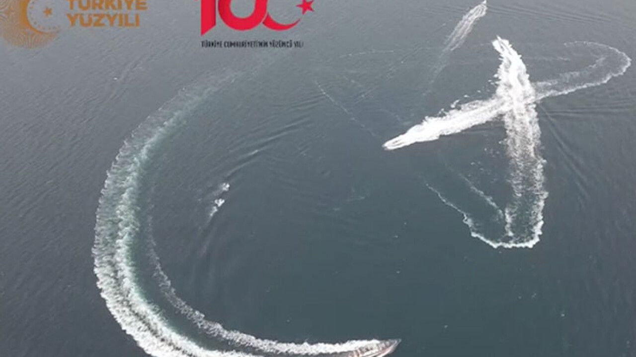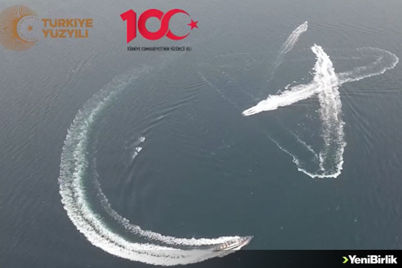 Balıkçı tekneleri denizde "ay yıldız ile 100. yıl" koreografisi oluşturdu.
