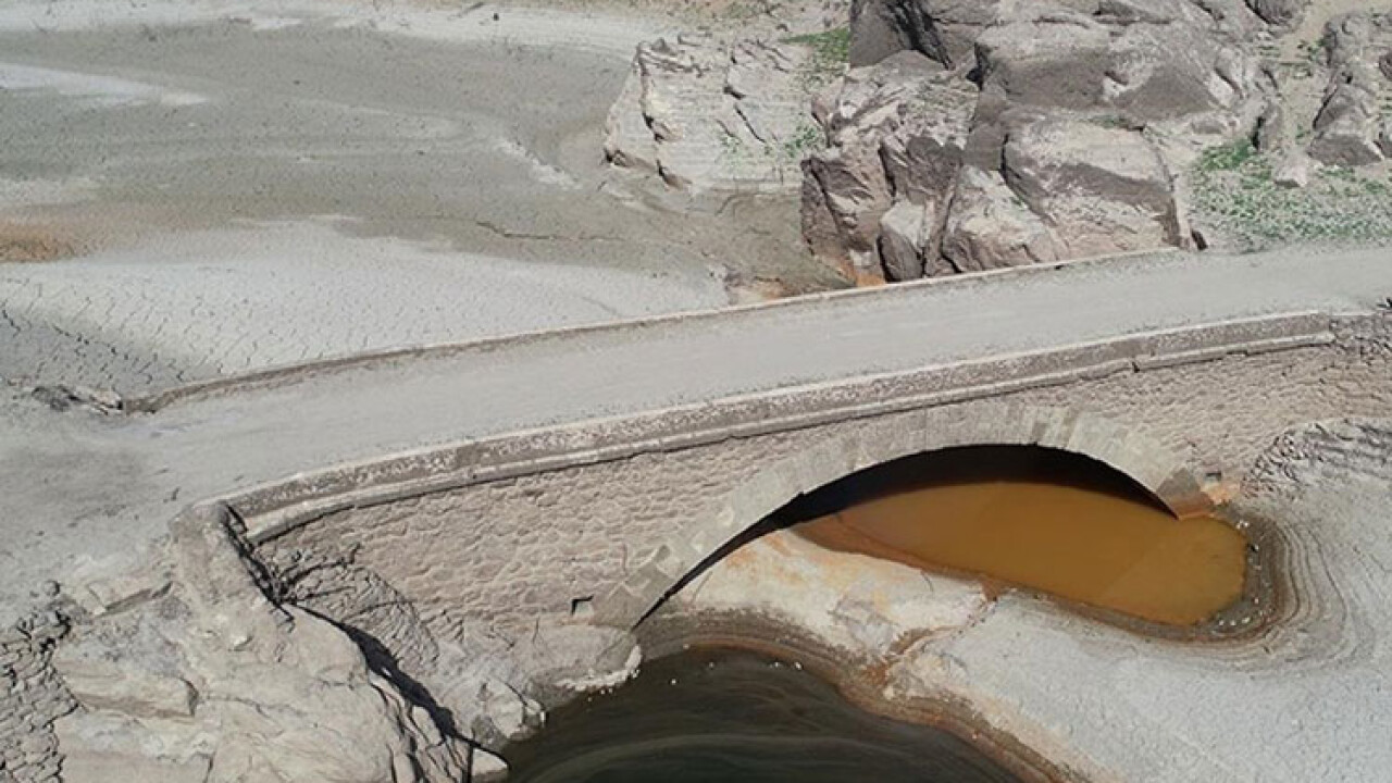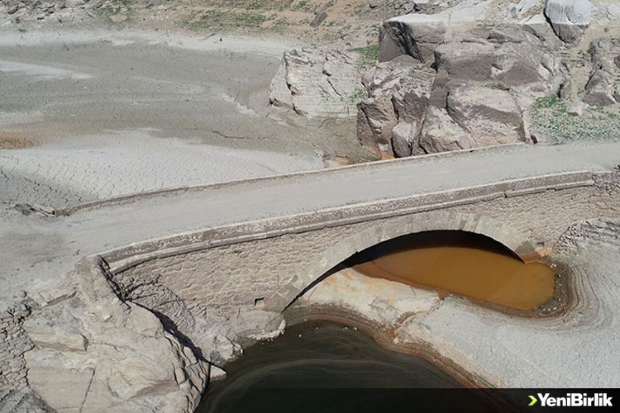 Şebeke suyunun sağlandığı barajın su seviyesinin düşmesiyle 4 yıl önce olduğu gibi köprü yeniden gün yüzüne çıktı.