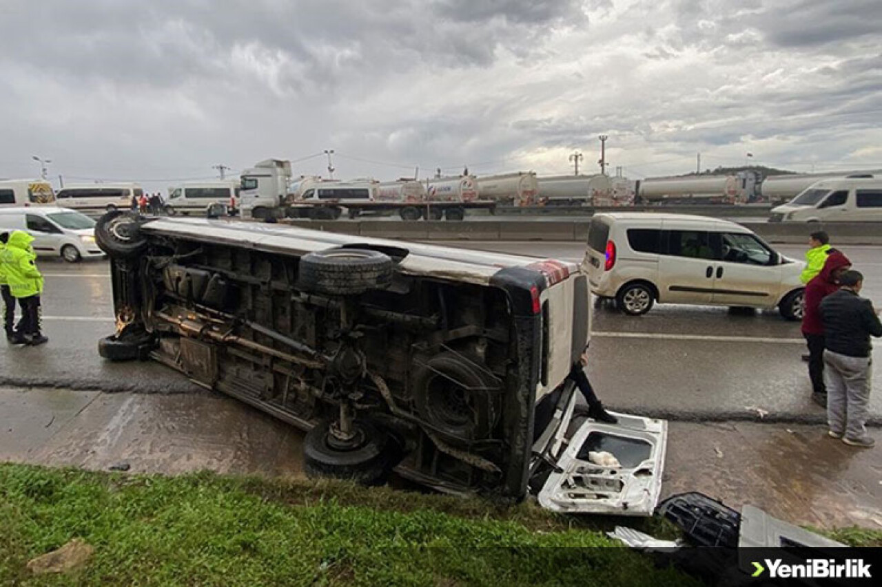 D-100 kara yolu İstanbul istikameti Tavşancıl mevkisinde B.B. idaresindeki 41 P 2891 plakalı servis minibüsü yol kenarına devrildi.