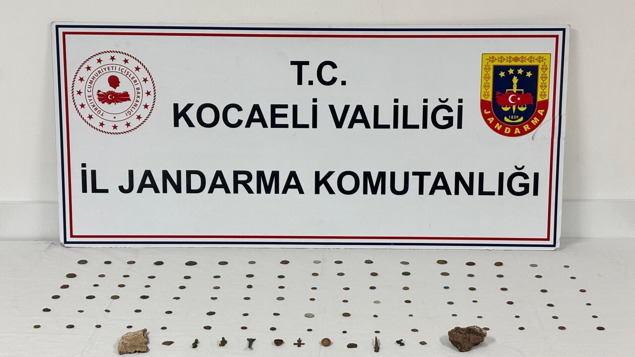 Dilovası ilçesinde durdurulan araçta yapılan aramada, Helenistik ve Bizans dönemine ait olduğu değerlendirilen 100 sikke ve 15 tarihi obje ele geçirildi.