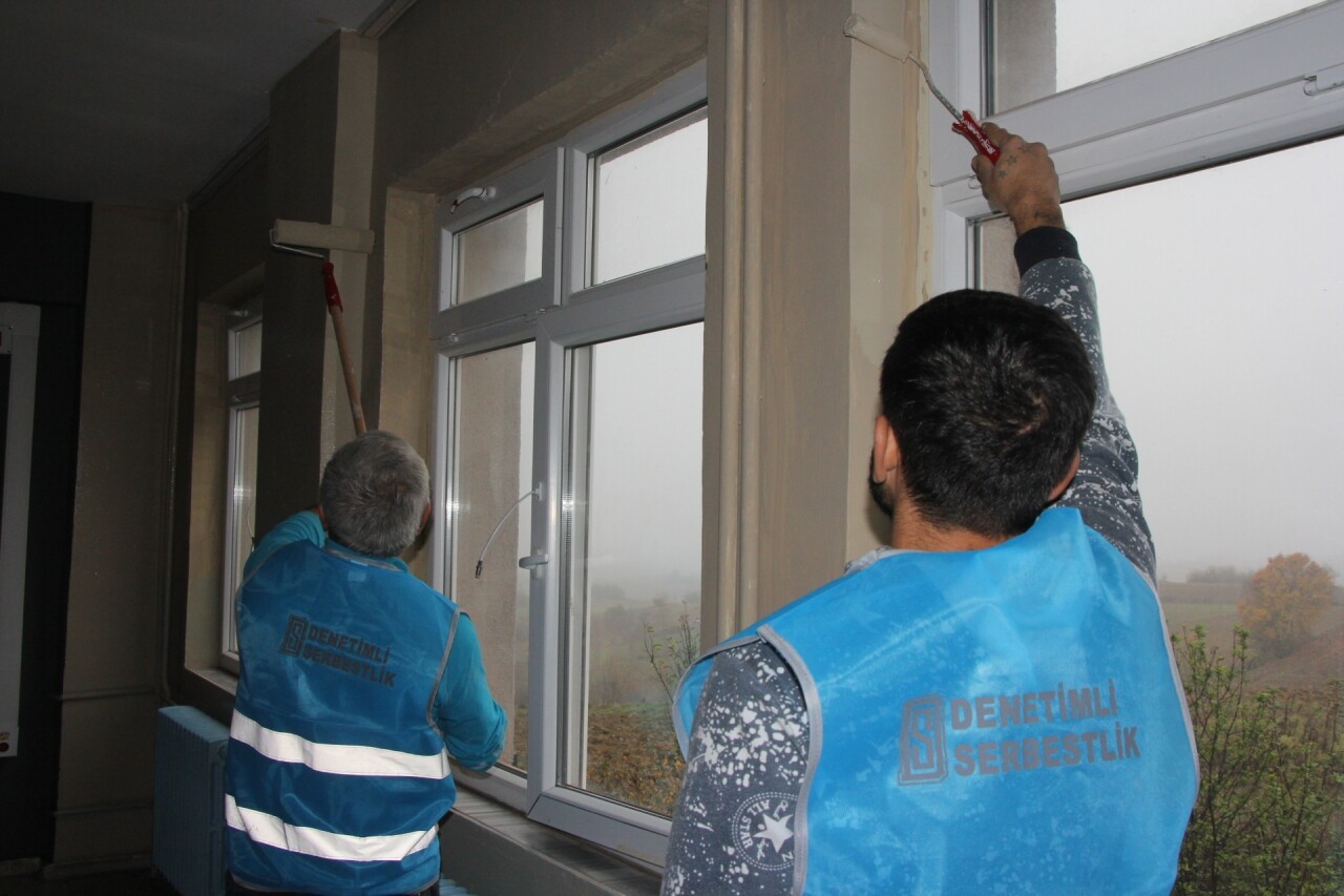 Denetimli serbestlik tedbirine tabi olan ve kamuya yararlı işte ücretsiz çalışma programından yararlanan yükümlüler, ara tatilde Kandıra Kocakaymaz Yunus Emre İlkokulu ve Ortaokulu'nda boyama ve tadilat işlerini yaptı.
