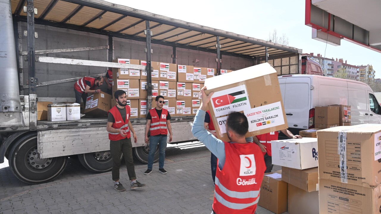 Ramazan boyunca atölyelerde özenle dikilen eşofman takımları ve toplanan oyuncaklar, Kızılay Karatay Şubesi iş birliğiyle hazırlanan yardım tırıyla Gazze’deki çocuklara ulaştırılmak üzere yola çıktı.