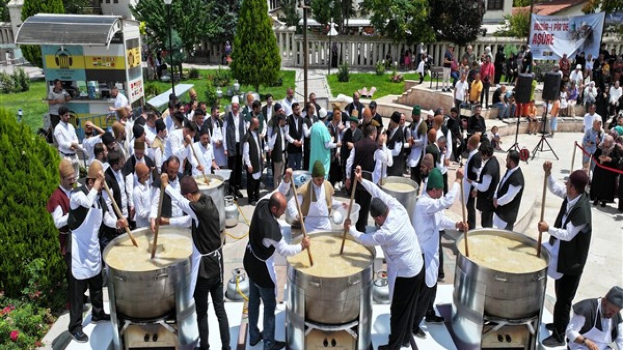 Mevlana Türbesi’nde ocaklardaki aşure, Mevlid-i Şerif ve zikirlerle gün boyu altı harlanmış kazanlarda kaynatıldı. Hazırlanan 4 ton aşure Konyalılara ikram edildi.