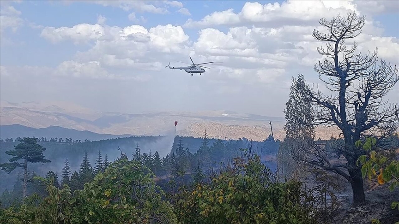 Söndürme çalışmalarına iki helikopter ile çok sayıda arazöz de destek verdi.