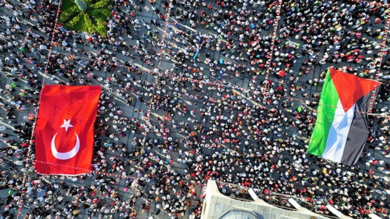 Mevlana Meydanı’nda ellerinde Türk ve Filistin bayraklarıyla bir araya gelen on binlerce Konyalının katılımıyla büyük bir coşkuya sahne olan program, Hafız Mehmet Ali Eroğlu’nun Kur’an-ı Kerim tilavetiyle başladı.