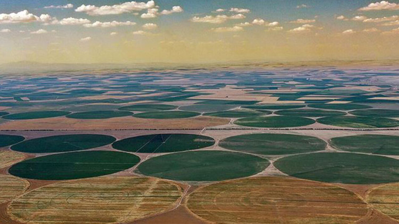 Tarlanın merkezini esas alan, yarı çap uzunluğundaki hareketli robotik sulama sistemine göre ekimin yapıldığı dairesel tarlalar, gökyüzünden bakıldığında görsel şölen oluşturuyor.