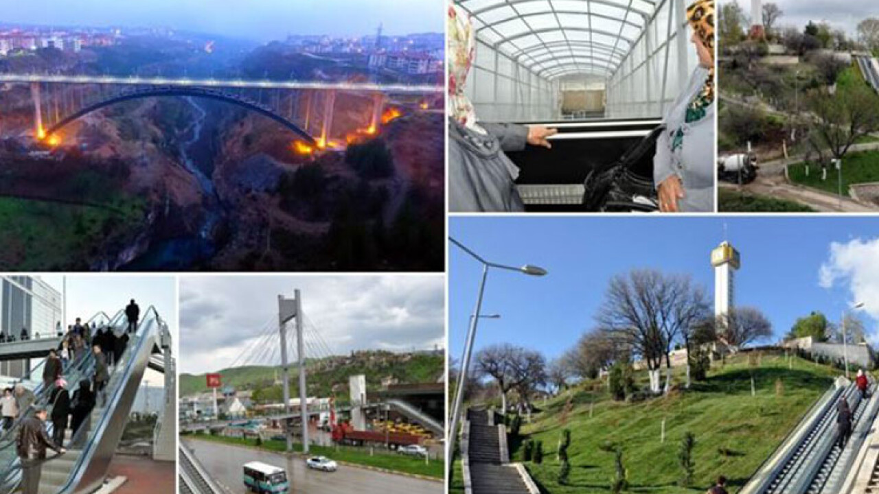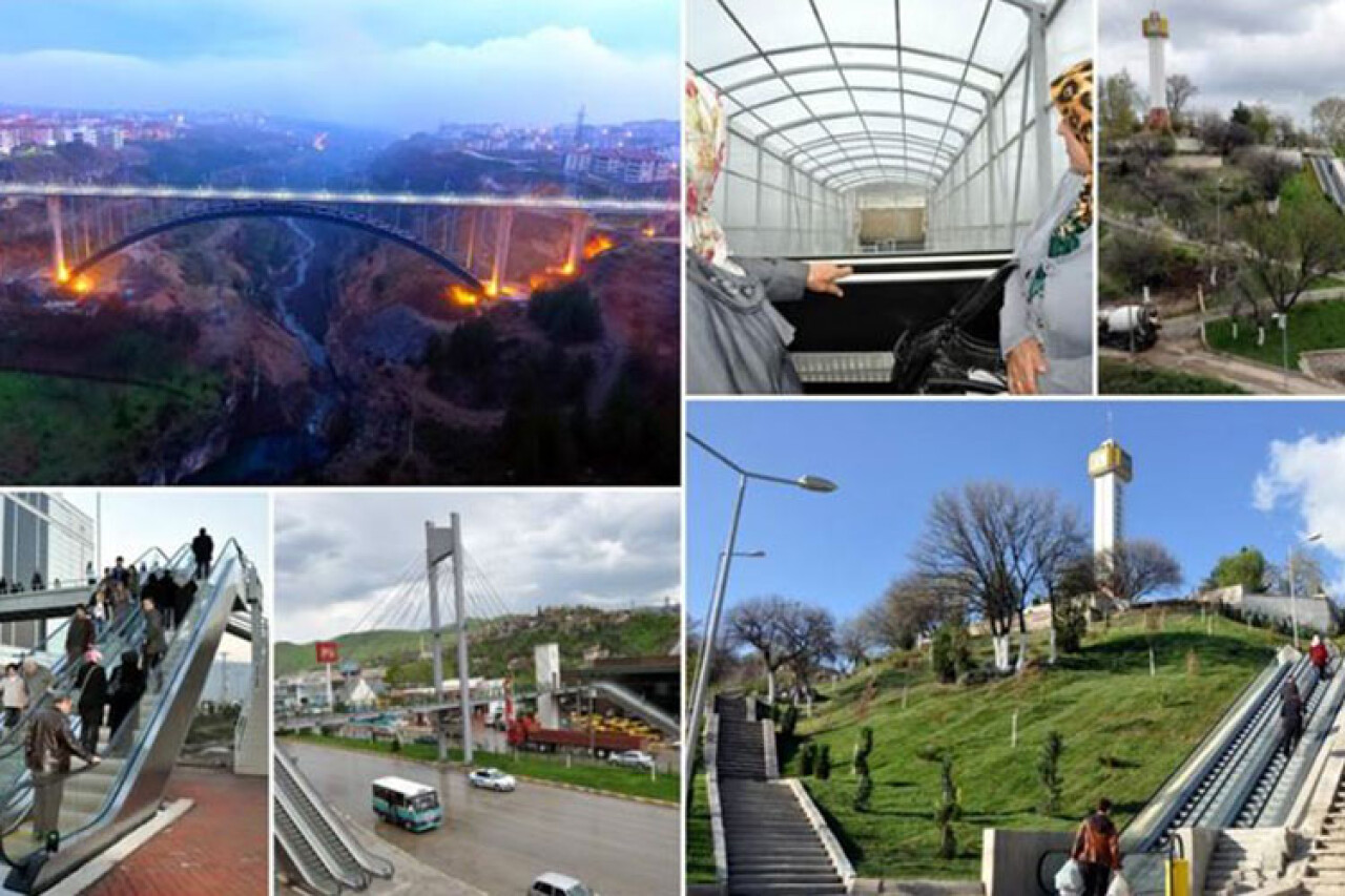 Bu kapsamda, kentteki farklı mahallelerde 60 metre uzunluğunda iki yürüyen merdiven, biri 27 diğeri ise 38 metre yükseklikte iki kule asansör, 100 metrelik yatay asansör, yaklaşık 200 metre uzunlukta ve 60 metre yükseklikte iki çelik yaya köprüsü vatandaşlara hizmet veriyor.