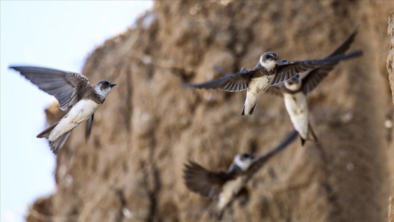 İlçenin Haydarbey Mahallesi'nde, daha önce inşaat için kum çıkarılan tepenin yamacına yüzlerce kuş yuva yaptı.