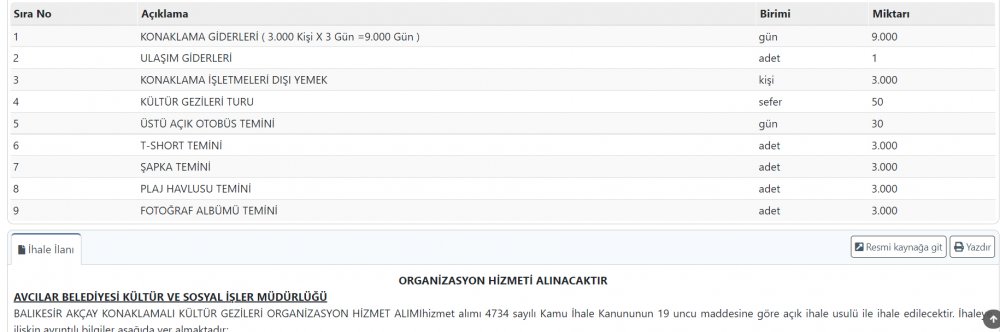 Bu ihalelerin bir de kardeşleri var. Yani Best Travel yalnız gezi ihalesi almamış. Otel konaklama ihalesi de yapmış. İhale kalemine göre Organizasyon Hizmeti İhalesi de ilginç mi ilginç. 26 Ağustos 2015 tarihinde gerçekleşen ihalede Avcılar Belediyesi 3 bin kişiye 3 günlük bir Akçay tatil organizasyonu yapıyor. Evet, tatil. 9 bin günlük konaklama kalemi dikkat çekici. İlginçlik bununla sınırlı değil. Tatilcilere 3 bin plaj havlusu, 3 bin t-short, 3 bin şapka ile 3 bin de fotoğraf albümü temin edilmesi de unutulmamış.