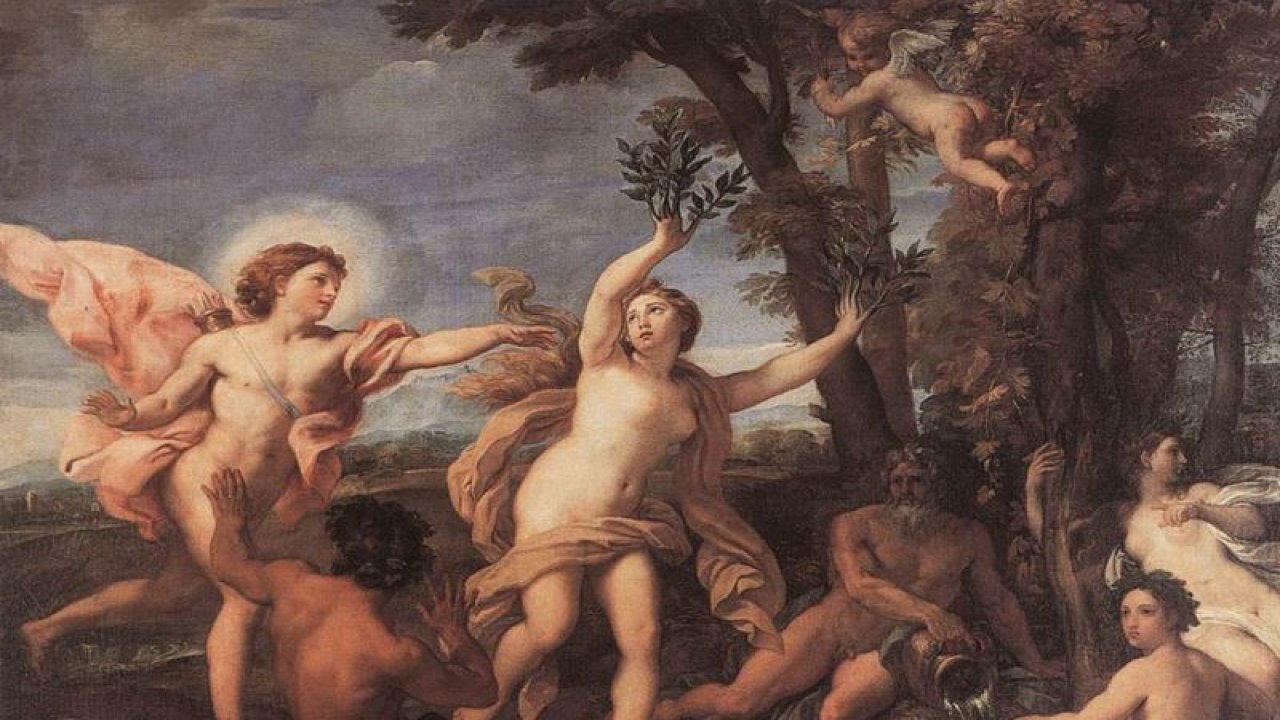 Defne ise Apollo'dan ısrarla kaçmaya devam eder. Apollo yorulan Defne'ye gittikçe yaklaşır. Artık bir nefes kadar yakınındadır. Çaresiz Defne ise ayağıyla toprağı eşeler ve yer tanrısı Gaia'dan yardım ister.