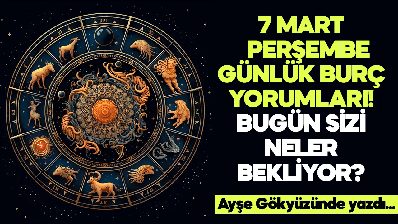 Günlük burç yorumları 7 Mart 2024 Perşembe gününde de araştırılıyor. Binlerce kişi iş, aşk, kariyer ve sağlık falları ile neler yaşayabileceğine dair öngörülerde bulunmak istiyor. Diğer yandan tüm burçların günlük yorumları da yine haberimizde yer alıyor. Koç, Boğa, İkizler, Yengeç, Aslan, Başak, Terazi, Akrep, Yay, Oğlak, Kova, Balık burcu bugün sizlere neler söylüyor? Burçların özellikleri bugününüzü veya ilerleyen günlerinizi nasıl etkileyecek? Yeni günün başlamasıyla birlikte kısa kısa özetler halinde 7 Mart 2024 Perşembe iş, para, aşk, sağlık ve kariyer fallarını içeren Koç, Boğa, İkizler, Yengeç, Aslan, Başak, Terazi, Akrep, Yay, Oğlak, Kova, Balık burç yorumları bu sayfada yer alıyor.