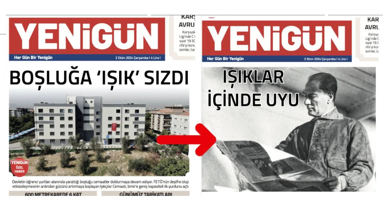 Gazetenin manşetinde; “Devlet boşluk yaratıyor, tarikatlar dolduruyor: Işıkçılar Cemaati’nden İzmir’e yeni yurt” spotu ile ‘BOŞLUĞA ‘IŞIK’ SIZDI' başlıklı haber yer alıyor.