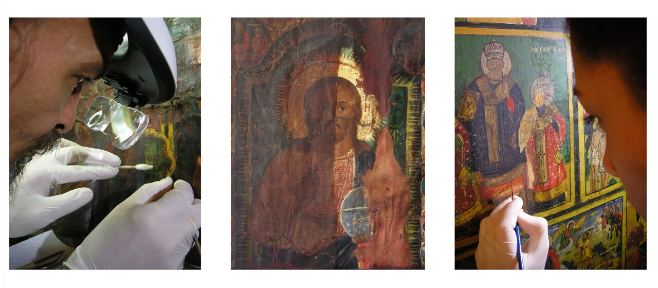“Yumurta tempera ile hazırlanmış, popüler, sade bir üsluba sahip, ancak aynı zamanda Batı’dan etkilenmiş bazı unsurları da içeren bu resim, 17. Yüzyıl’ın el yazması ikona standlarını karakterize eden minyatür tekniğini ve çok parlak renkleri güçlü bir şekilde taklit ediyor ve kökenlerini doğruluyor.