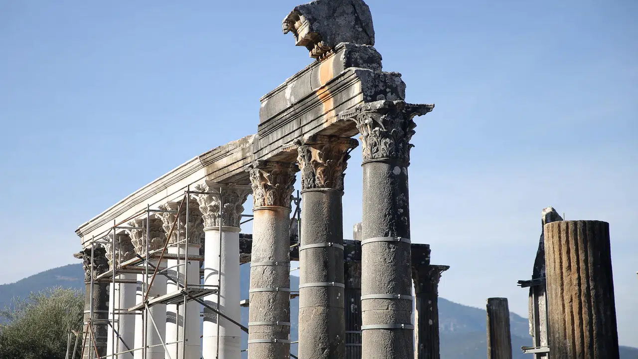 Kültür ve Turizm Bakanlığı tarafından, Muğla’nın Milas ilçesinde yer alan 1850 yıllık Zeus Lepsynos Tapınağı’nda yürütülen kapsamlı restorasyon çalışmaları tüm hızıyla sürüyor. Geleceğe Miras Projesi kapsamında, tapınağın zemin güçlendirme ve dört cephesindeki sütun restorasyonunun 2026 yılında tamamlanması hedefleniyor.