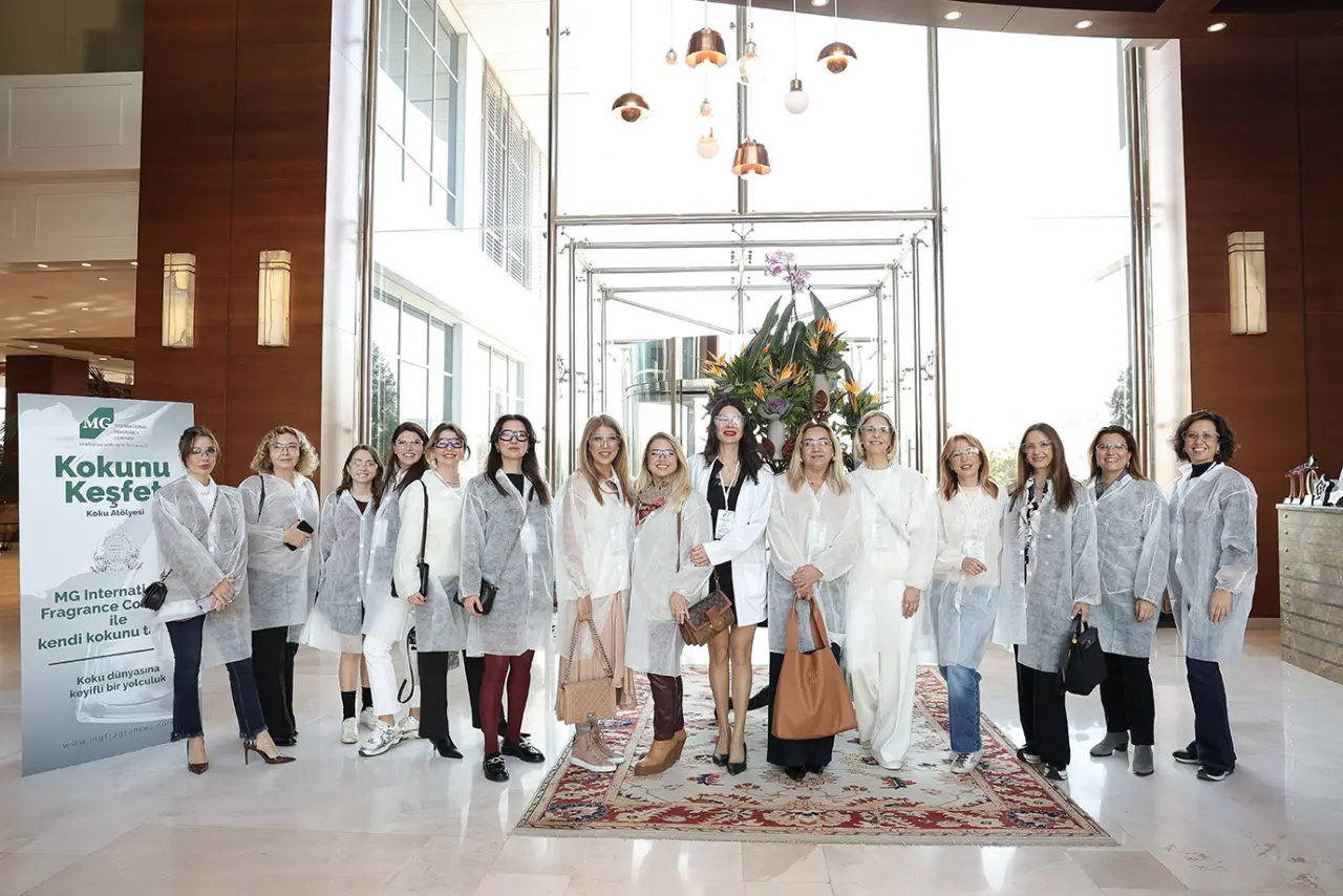 Teknoloji, inovasyon ve çalışanlarına sunduğu modern yaşam alanlarıyla dikkat çeken tesis, Maison Yirmisekiz üyelerinden büyük beğeni topladı. Üretim hatları ve laboratuvar turu ile başlayan ziyarette, Maison Yirmisekiz üyeleri, MG International Kurumsal İletişim Direktörü Duygu Beşbıçak’ın rehberliğinde esans üretiminin detaylarını ve formülasyon süreçlerini keşfetti. Numunelerin ayak izi teknolojisiyle nasıl analiz edildiğini, formüllerin oluşturulma aşamalarını, uyum ve kalıcılık testlerini gözlemleyerek, kokunun bilimsel yönlerini yakından inceleme fırsatı buldular.