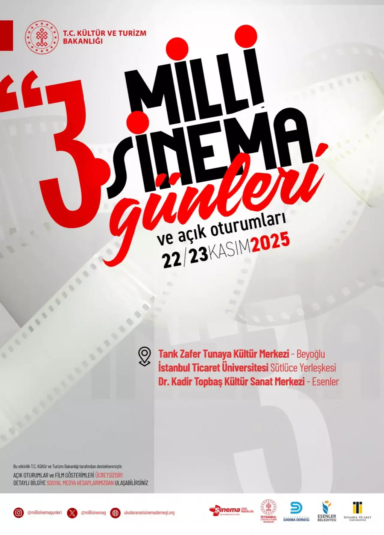 Film gösterimleri, 22-23 Kasım’da Tarık Zafer Tunaya Kültür Merkezi, Esenler Kadir Topbaş Kültür Merkezi ve İstanbul Ticaret Üniversitesi Sütlüce Yerleşkesi salonlarında halka açık ve ücretsiz olacak.