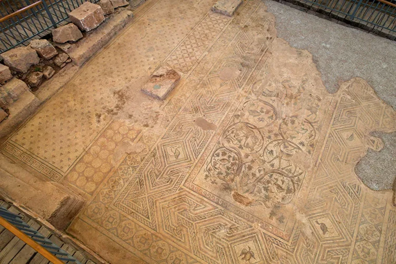 Mozaikte yer alan üç boyutlu desenler, dönemin inanç dünyasına dair sembollerle birleşerek hem estetik hem de kültürel bir bütünlük sunuyor. Geyik ve aslan gibi geleneksel figürlerin yerine kullanılan bu motifler, yapının hem dini hem mimari önemini ortaya koyuyor.