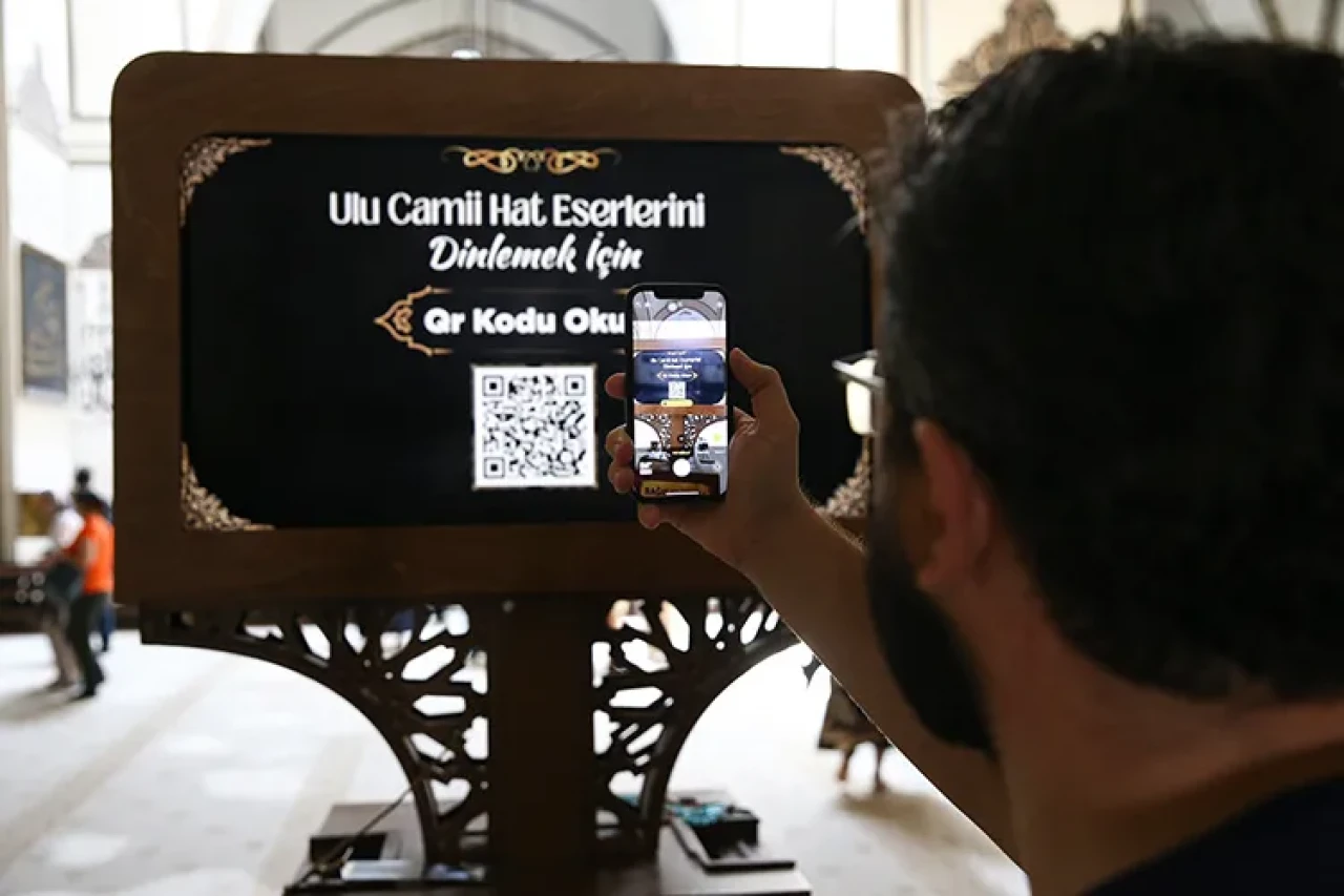 Duvarlarında 41 usta hattatın emeğini taşıyan 192 hat eseriyle adeta bir "manevi sanat galerisi" olan Ulu Cami, şimdi bu eserlerin her birine dair bilgileri ziyaretçilerine QR kodlar aracılığıyla sunuyor. Caminin üç ana kapısında yer alan dijital ekranlardan erişilebilen bu sistem sayesinde, ziyaretçiler ister yazılı olarak okusun ister kulaklıklarıyla dinlesin; her yazının anlamına, hattatına ve tarihçesine ulaşabiliyor.