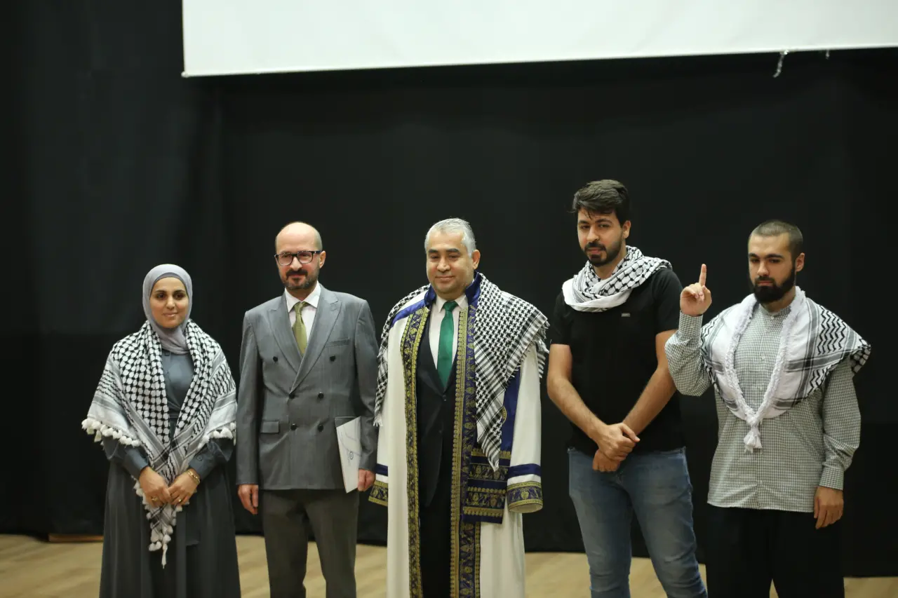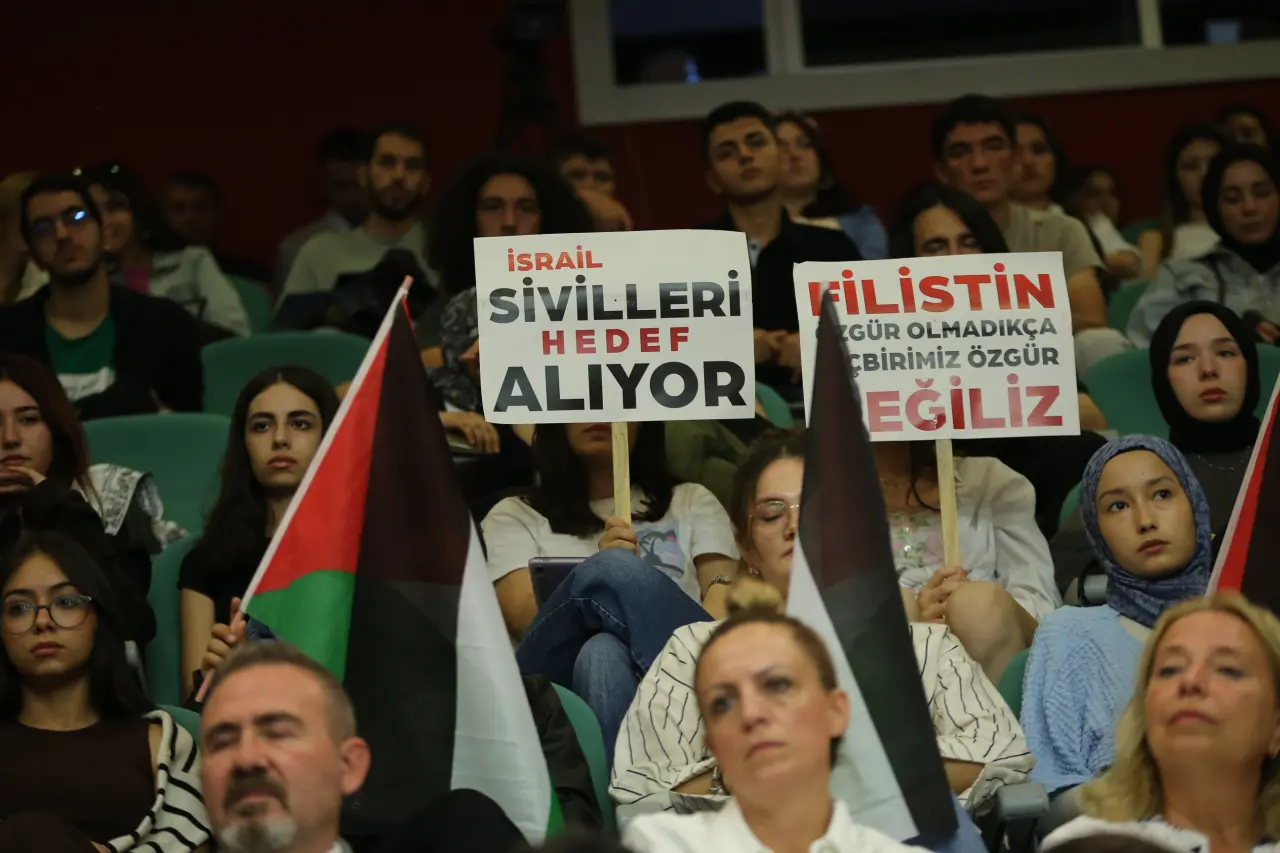 Prof. Dr. Kent, üniversite olarak öğrencilerine adalet, merhamet ve insanlık onurunun değerini öğretmenin görevleri olduğunu söyleyerek, Filistin halkının haklı mücadelesine desteklerini yineledi.