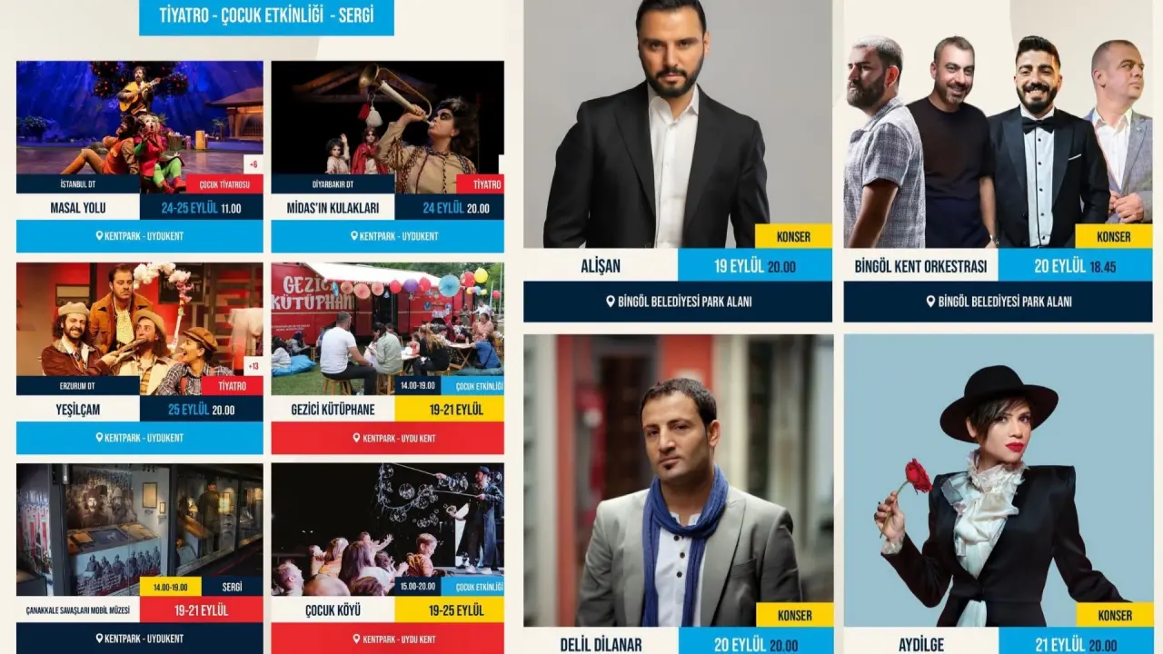 “Bir Anadolu Şenliği” 19–25 Eylül tarihleri arasında Bingöl Belediyesi Park Alanı ve Kentpark Uydu Kent Etkinlik Alanı'nda gerçekleşecek. Müziğin, tiyatronun, çocuk etkinliklerinin ve kültürel atölyelerin bir arada sunulacağı şenlikte sahne alacak isimler arasında sevilen sanatçılar Alişan, Aydilge, Maral ve Delil Dilanar öne çıkıyor. Ayrıca Bingöl Kent Orkestrası, Grup Dergah ve Şanlıurfa Devlet Türk Halk Müziği ve Sıra Gecesi Topluluğu konserleriyle program zenginleşiyor.