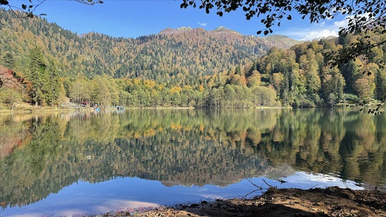 Yeşilin yanı sıra sarı, turuncu ve kırmızının tonlarına bürünen doğanın göle yansımasıyla oluşan manzara ziyaretçilerini hayran bırakıyor.