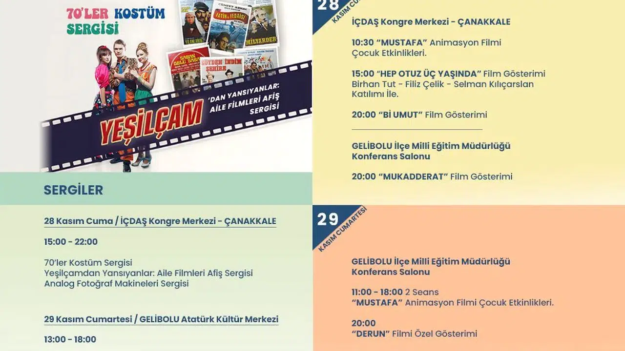 Çanakkale Onsekiz Mart Üniversitesi ile Çanakkale Savaşları Gelibolu Tarihi Alan Başkanlığı’nın da katkı sunduğu festival, yalnızca sinema sanatını değil, aynı zamanda bölgenin kültürel mirasını da görünür kılmayı amaçlıyor. Festival boyunca izleyicilere nostaljik bir sinema atmosferi sunan sergiler ve Yeşilçam’a göndermeler içeren etkinlikler de yer alacak.
