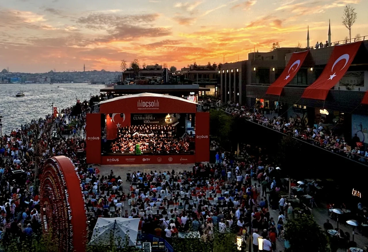 Doğuş Meydanı, günün en coşkulu anlarına sahne olacak. Şef ve genel müzik direktörü Prof. Rengim Gökmen yönetimindeki Doğuş Çocuk Senfoni Orkestrası (DÇSO), Cumhuriyetin 102. yılı onuruna iki ayrı konserle sanatseverlerle buluşacak. Yaklaşık 70 öğrencinin yer alacağı bu anlamlı performanslarda, orkestranın çatısı altında yetişip uluslararası kariyer edinen eski öğrenciler; keman sanatçıları Alican Süner, Hasan Gökçe Yorgun, İdil Yunkuş ve Sesim Bezdüz de yeniden sahneye çıkarak genç müzisyenlere ilham verecek. Repertuvarda yer alan 10. Yıl Marşı, Gençlik Marşı ve Türkiye Senfonik Şiiri gibi eserler, meydanı tam anlamıyla bir Cumhuriyet atmosferine büründürecek. Ayrıca, Radyo Voyage’ın 29 Ekim temalı özel müzikleri de gün boyu Doğuş Meydanı'nda yankılanacak.