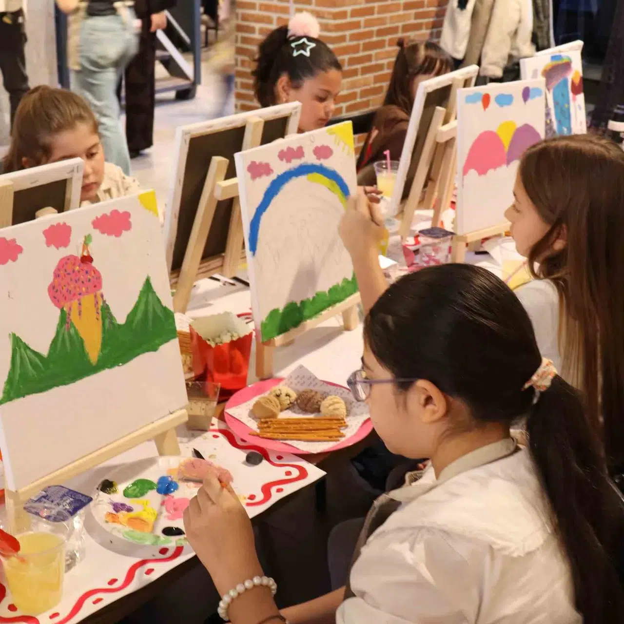Bir sanat merkezinde bir araya gelen çocuklar, uzman eğitmenlerin gözetiminde sanatsal becerilerini geliştirme şansı buldu. Tuval, ahşap ve çeşitli objeler üzerinde boyama tekniklerini deneyimleyen katılımcılar, farklı materyallerle çalışmanın heyecanını yaşadı. Eğlenirken öğrenme fırsatı bulan çocuklar, kendi hayal dünyalarını özgürce dışa vurmanın mutluluğunu tattı.