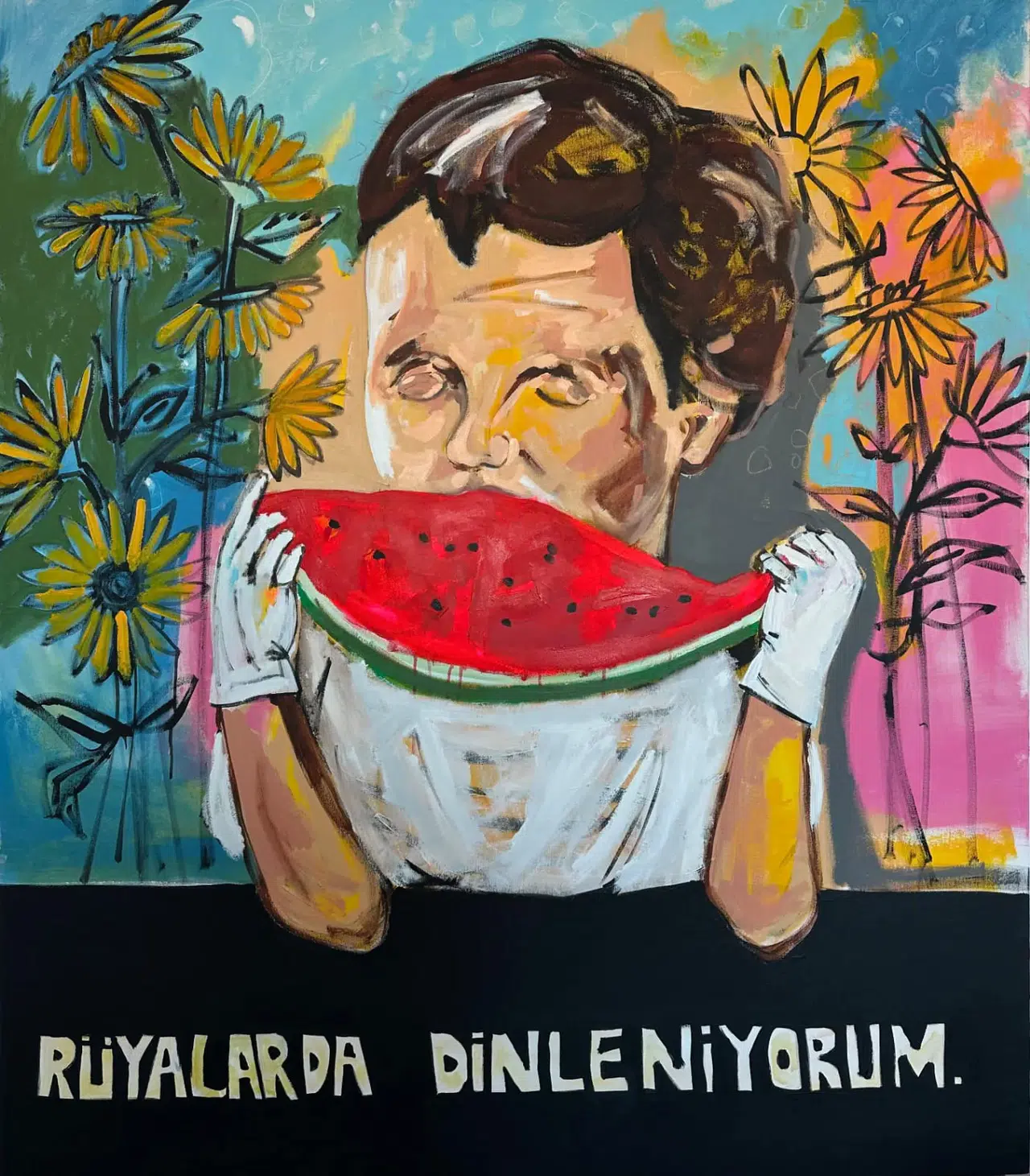Sergide, sanatçının kişisel alanından yola çıkarak dünyanın farklı yerlerindeki kırılganlıkları çağrıştıran işler öne çıkıyor. Günlük yaşamın içinden seçilen nesneler ve renklerle örülen bu görsel anlatı, bir yandan izleyiciye tanıdık bir huzur sunarken diğer yandan sarsıcı duygusal farkındalıklar yaratıyor. Örneğin bir karpuz dilimi, aynı anda hem çocukluk oyunlarını hem de kayıp ve yasın izlerini taşıyabiliyor.