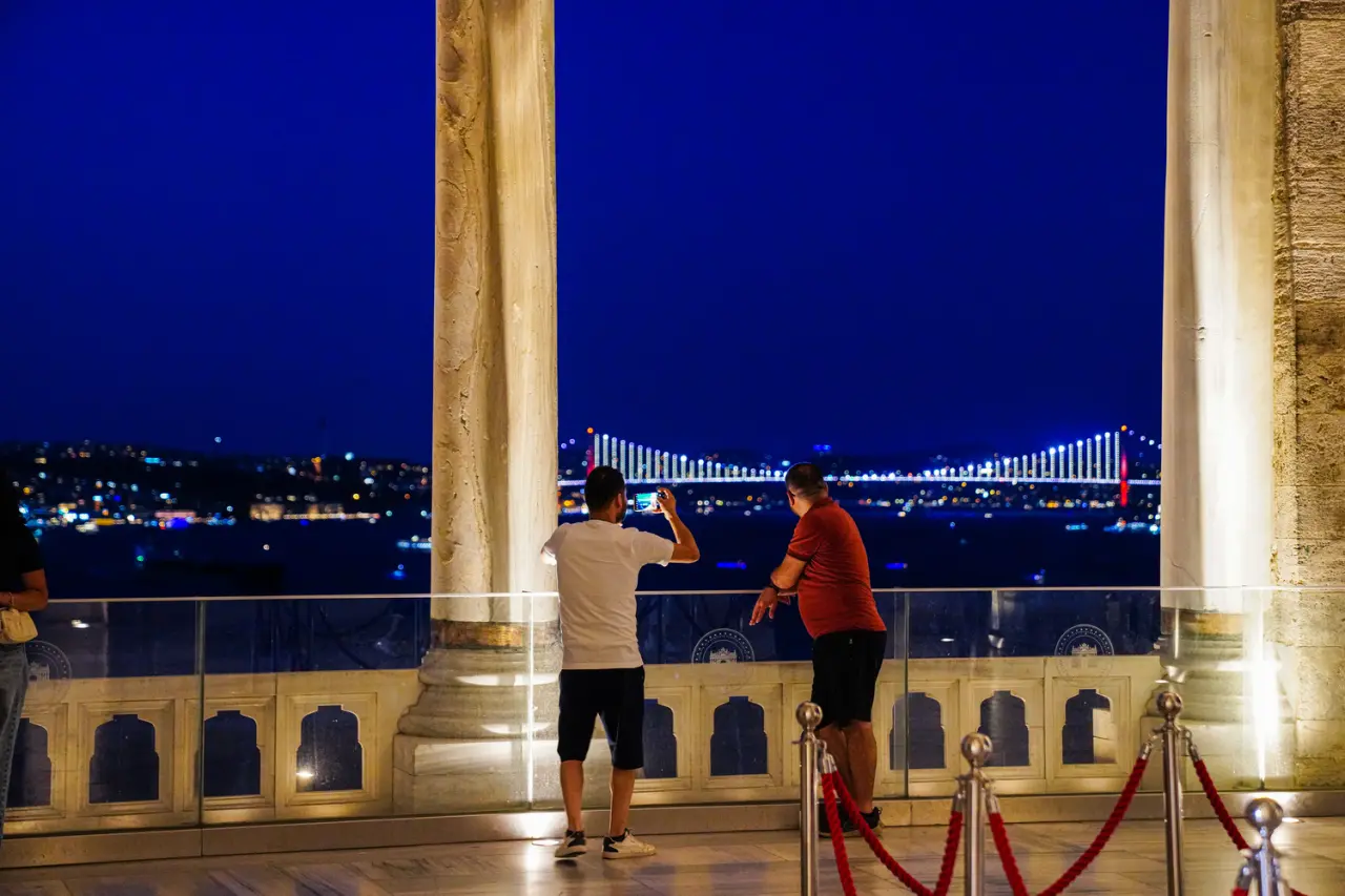 Turların en dikkat çekici duraklarından biri olan Mecidiye Köşkü, Havuzlu Teras ve İftariye Kameriyesi, ziyaretçilere İstanbul Boğazı ve Tarihi Yarımada’ya karşı benzersiz bir manzara sunarak gecenin en etkileyici anlarına ev sahipliği yaptı.
