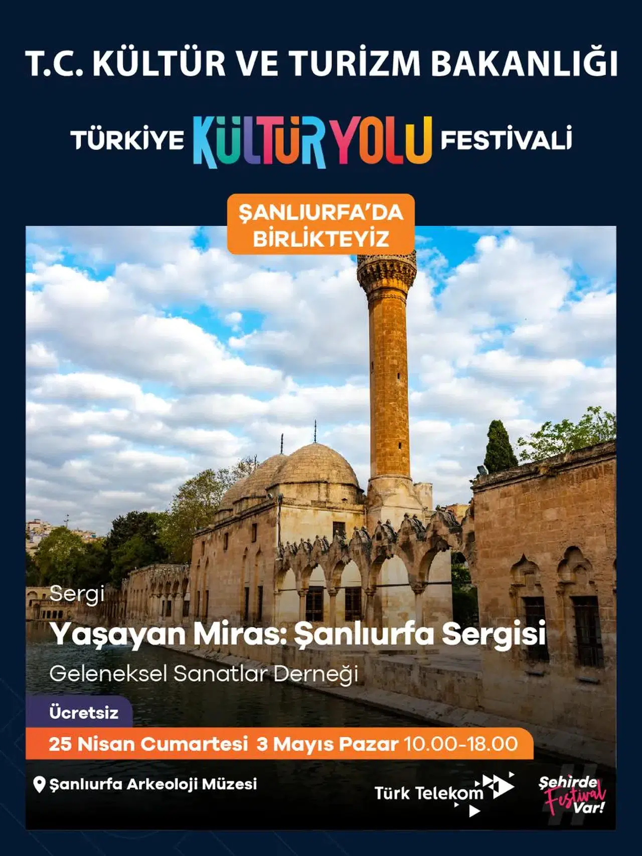 Kültür ve Turizm Bakanlığı tarafından Türkiye’nin yedi bölgesinde ve toplam yirmi altı şehirde düzenlenen Türkiye Kültür Yolu Festivali, insanlık tarihinin en eski yerleşim merkezlerinden biri olan Şanlıurfa’da kapılarını açtı. Tarihi mirası, kültürel dokusu ve gastronomi zenginliğiyle dikkat çeken kent, bu yıl üçüncü kez festivale ev sahipliği yapıyor. Dokuz gün sürecek olan program kapsamında sergiler, söyleşiler, çocuk etkinlikleri ve konserler ziyaretçilerle buluşacak.