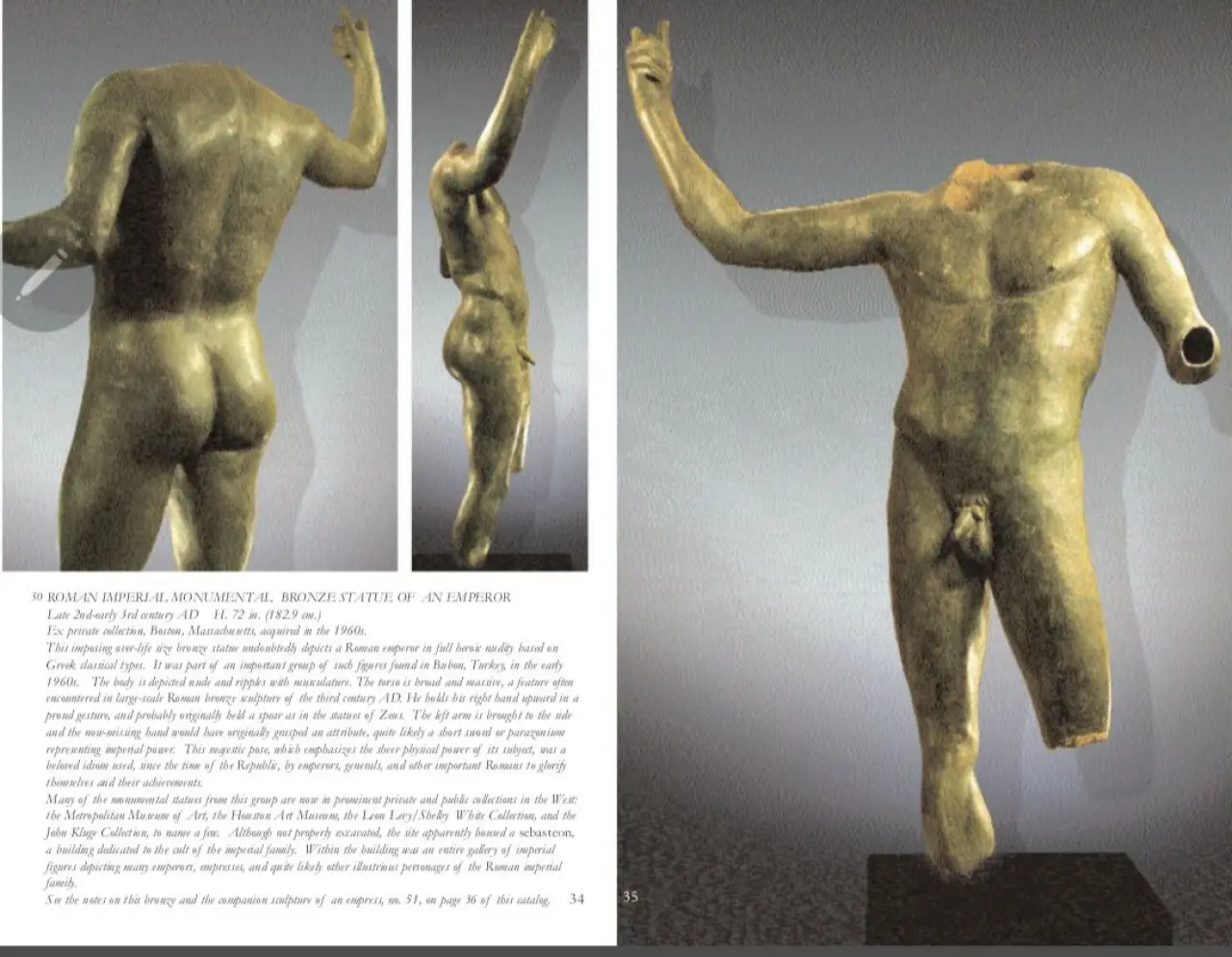 1960’lı yıllarda Boubon Antik Kenti’nde yapılan kaçak kazılarda gün yüzüne çıkarılan yaklaşık 10 heykelden biri olan İmparator heykeli, önce İngiltere’ye, ardından ABD’ye götürüldü. 2007 yılında, heykel ABD’li koleksiyoner Aaron Mendelsohn tarafından bir galeriden satın alındı. Ancak savcılık, Mendelsohn’un heykelin menşei konusunda bilgi sahibi olduğunu ve buna rağmen eseri sergilemeye devam ettiğini belirtti.
