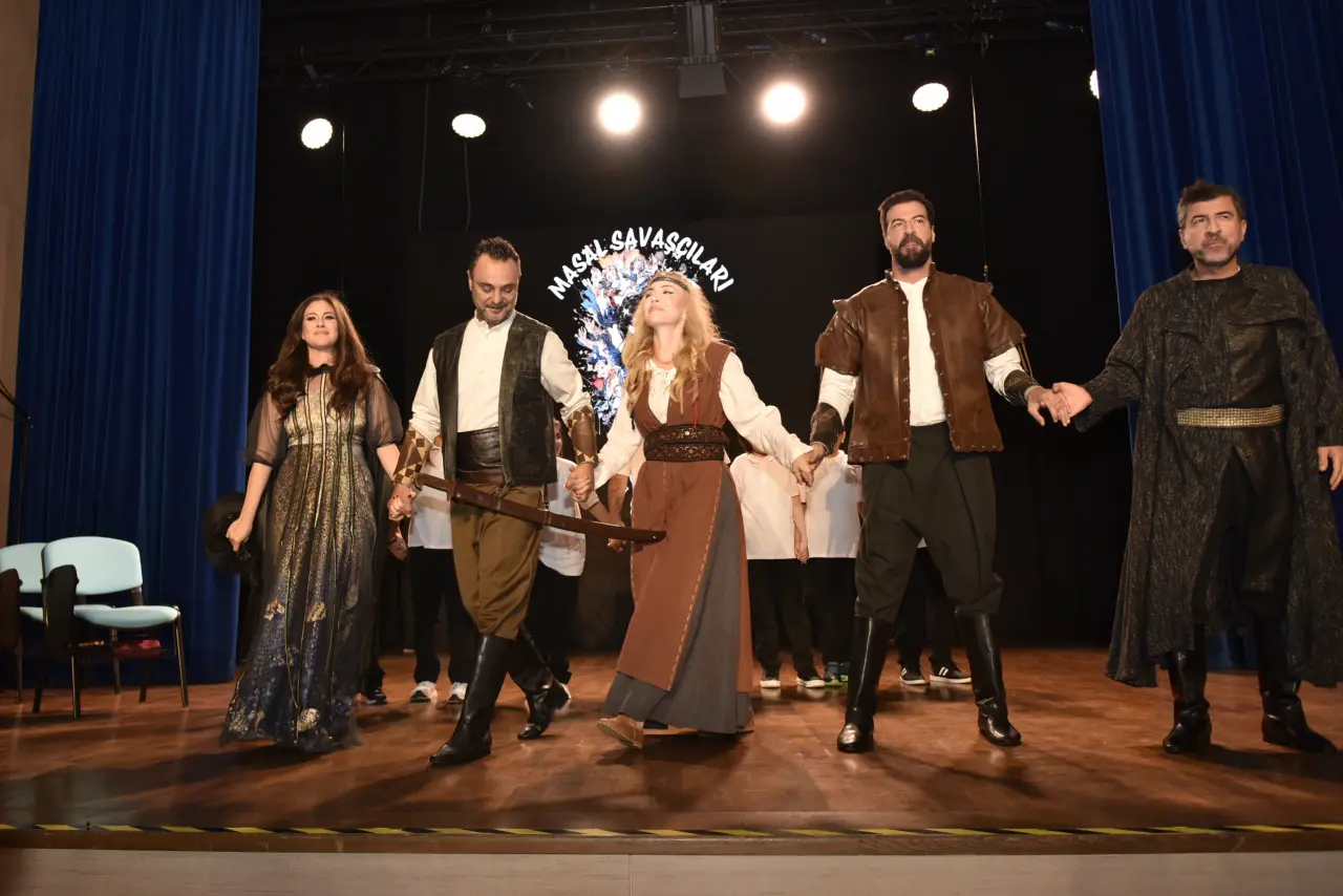 “Masal Savaşçıları” sahnesinde alkışlar yalnızca performansa değil, yüreğe, cesarete ve birliğe çalındı. Bu özel gece, gösterdi ki; tiyatro sadece repliklerin değil, hayallerin de sahnesidir. Özel gereksinimli çocuklar, bu sahnede sadece bir oyun oynamadı, hayata karşı duruşlarını ortaya koydu.