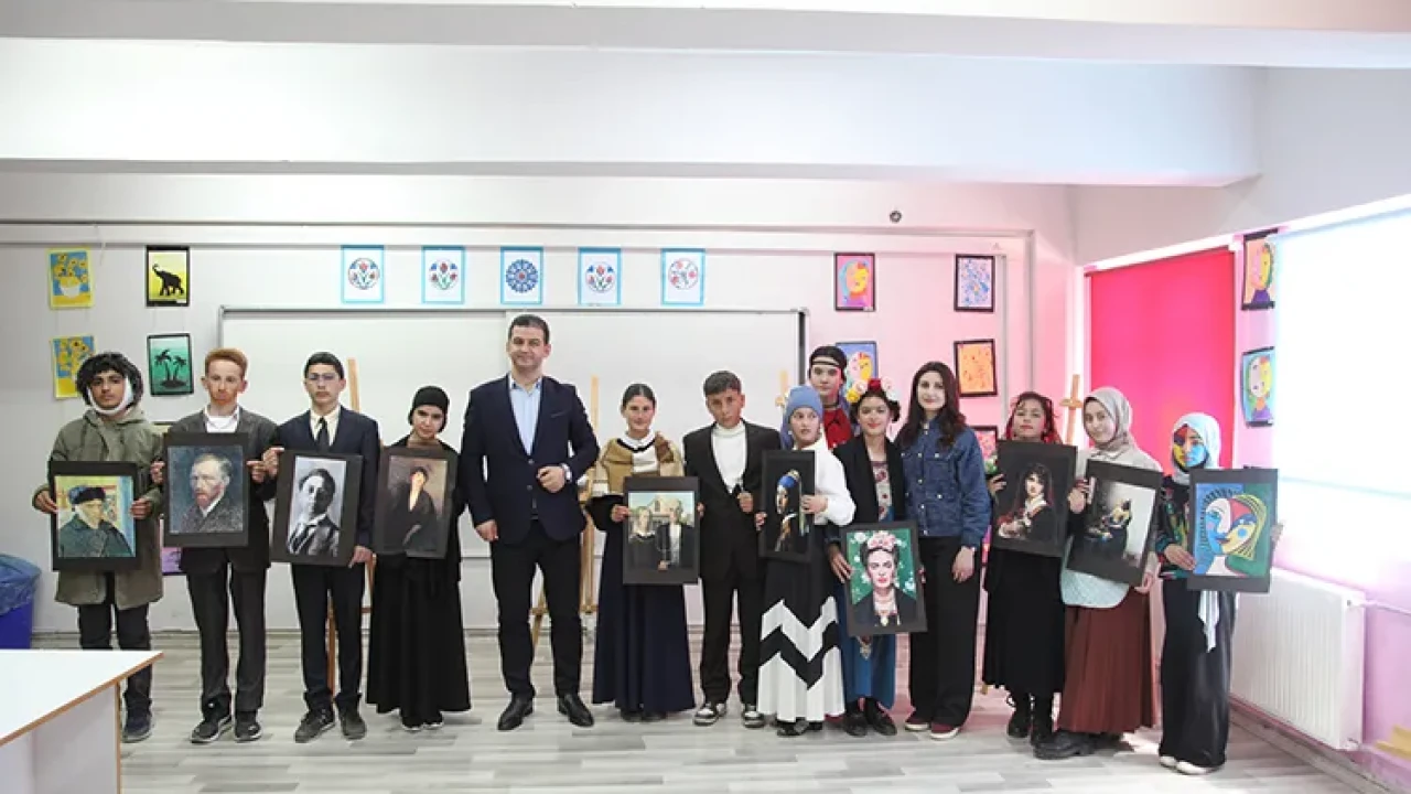 Görsel Sanatlar Öğretmeni Ezgi Yerli'nin öncülüğünde anlamlı etkinlik: “Tablolar Canlanıyor” projesi büyük beğeni topladı. Bitlis’in köklü ilçelerinden Ahlat’ta eğitim alanında örnek bir başarıya daha imza atıldı. Alpaslan Ortaokulu’nda görevli Görsel Sanatlar Öğretmeni Ezgi Yerli’nin rehberliğinde hazırlanan “Tablolar Canlanıyor” adlı projeyle, dünya sanat tarihine damga vurmuş ressamların eserleri öğrenciler tarafından birebir canlandırıldı.