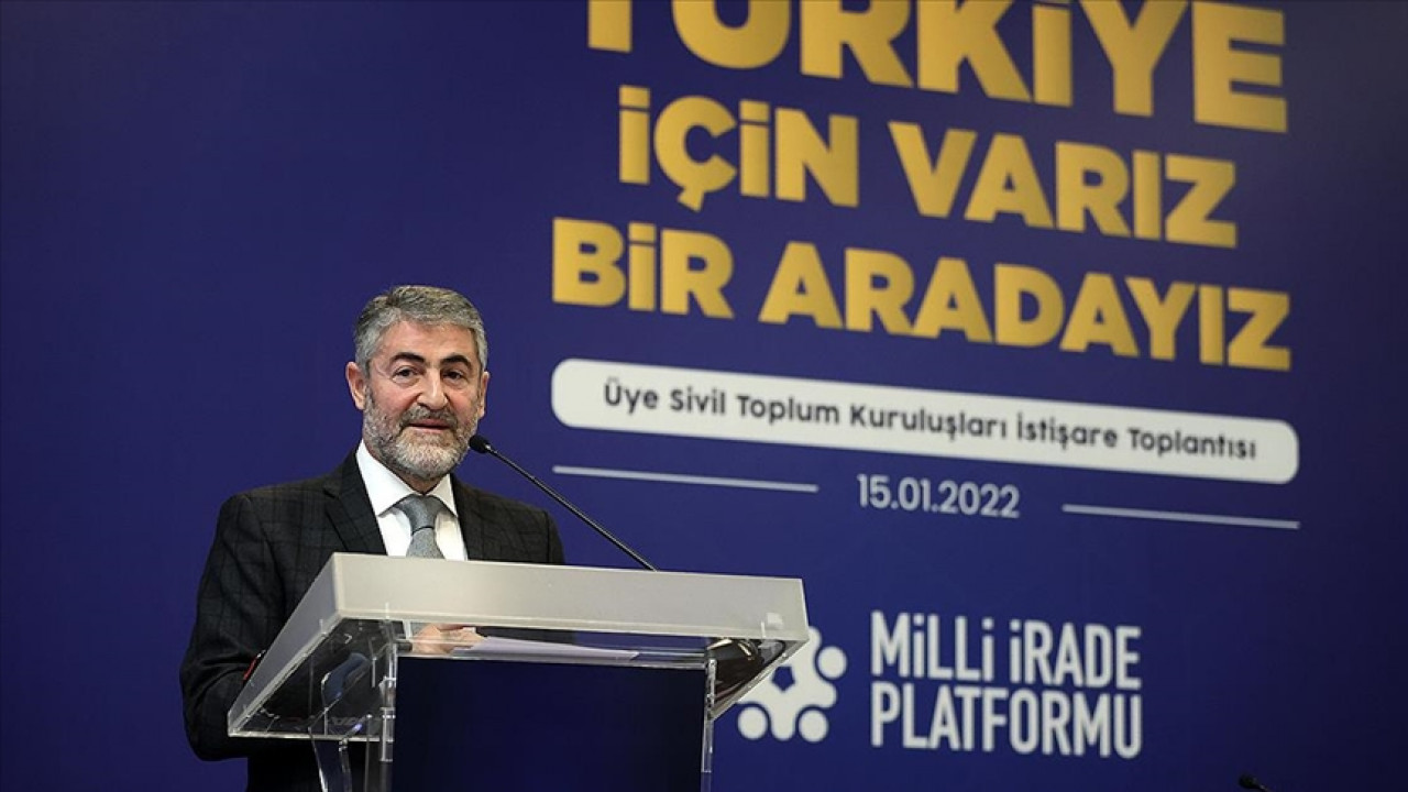 Hazine ve Maliye Bakanı Nureddin Nebati, Milli İrade Platformu tarafından "Türkiye İçin Varız, Bir Aradayız" başlığıyla düzenlenen üye sivil toplum kuruluşları istişare toplantısında yaptığı konuşmada, son 2 yılda salgının etkisiyle ve enflasyon nedeniyle küresel ekonomide yaşanan sıkıntılardan bahsetti.