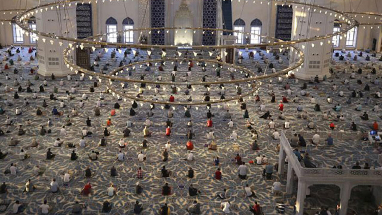 Cami imamı namaza başlamadan önce, "Saflarımızı sosyal mesafe kuralına uygun bir şekilde dolduralım. İbadet esnasında maskelerimizi çıkarmayalım." uyarısında bulundu.