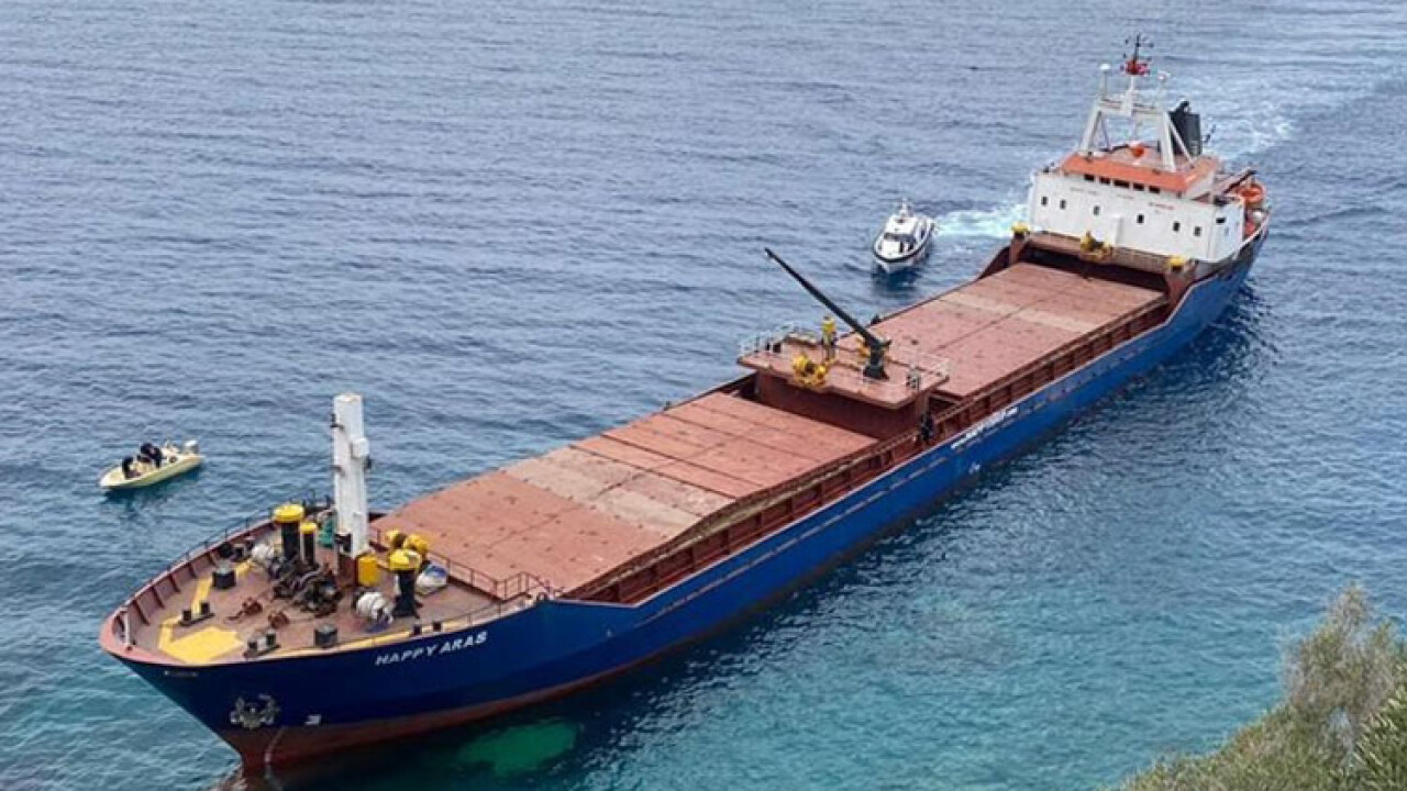 Ukrayna'dan Mersin'e yük götüren Belize bayraklı "Happy Aras" isimli yük gemisi Murdala Koyu yakınlarında arızalanarak karaya oturdu.