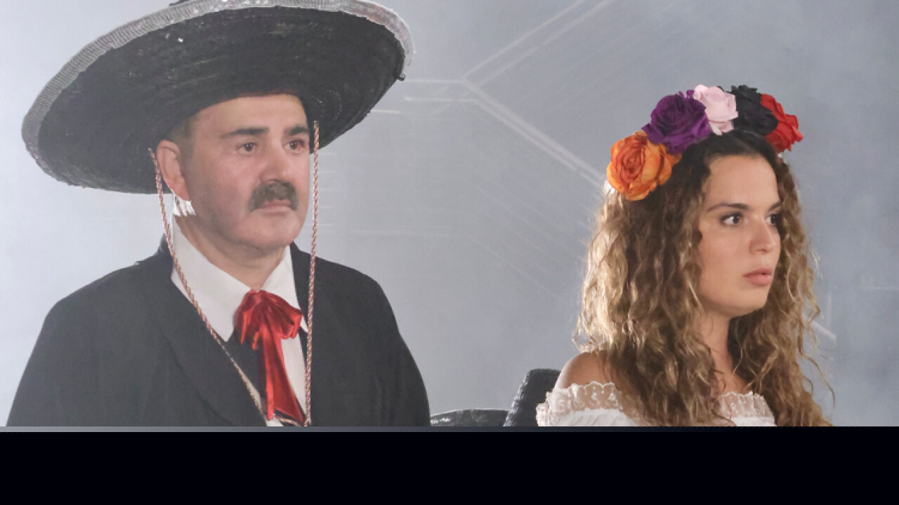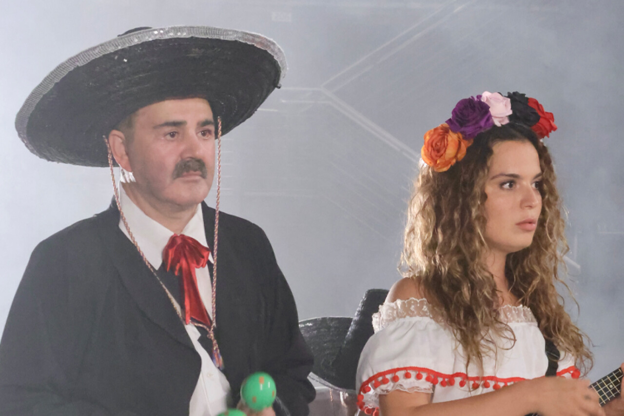 Başarılı komedyen Şafak Sezer'in 'Papaz Fikret' karakterini canlandırdığı efsane serinin yeni filmi 'Kutsal Damacana 5-Zombi' setinde, senaryo gereği Meksika kıyafetleri giyen Şafak Sezer ve Aslı Bekiroğlu'nun eğlenceli görüntüleri objektiflere böyle yansıdı.