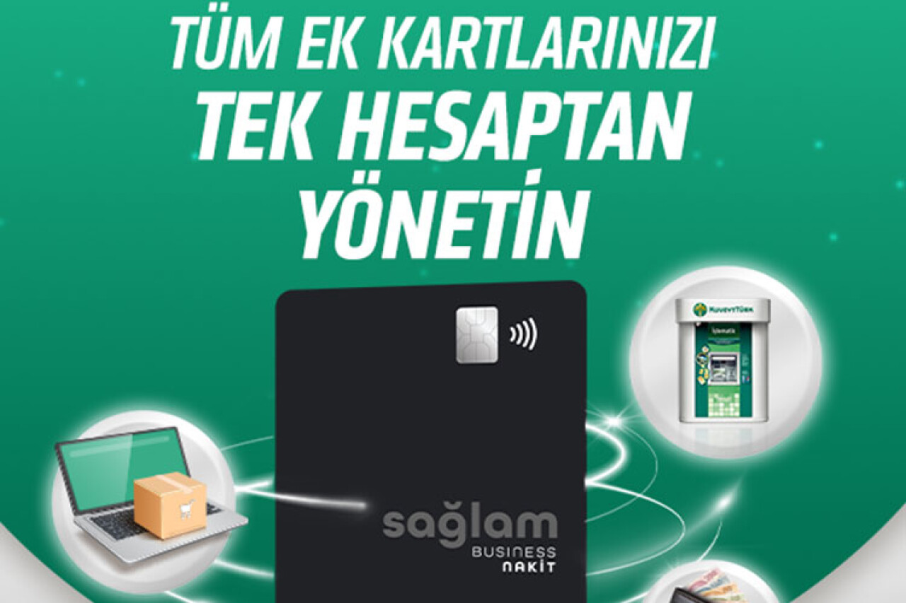 Bir banka kartı olarak kullanılan ve kart ücreti olmayan Sağlam Business Nakit Kart, her harcama için altın puan kazanma imkânı sunarken, müşterilere nakit akışı ek kartlar üzerinden kontrol etme olanağı sağlıyor. Kurumsal hesap üzerinden ek kartların işlem yetkilerini düzenleyebilme özelliği, Sağlam Business Nakit Kart’ı rakiplerinden ayrıştırıyor. Kuveyt Türk Mobil üzerinden sanal banka kartı tanımlama özelliğine de sahip olan Sağlam Business Nakit Kart için Kuveyt Türk Mobil veya en yakın fiziki şubeden başvuru yapılıyor ve şifre işlemleriyle birlikte yeni kart anında kullanıma sunuluyor.