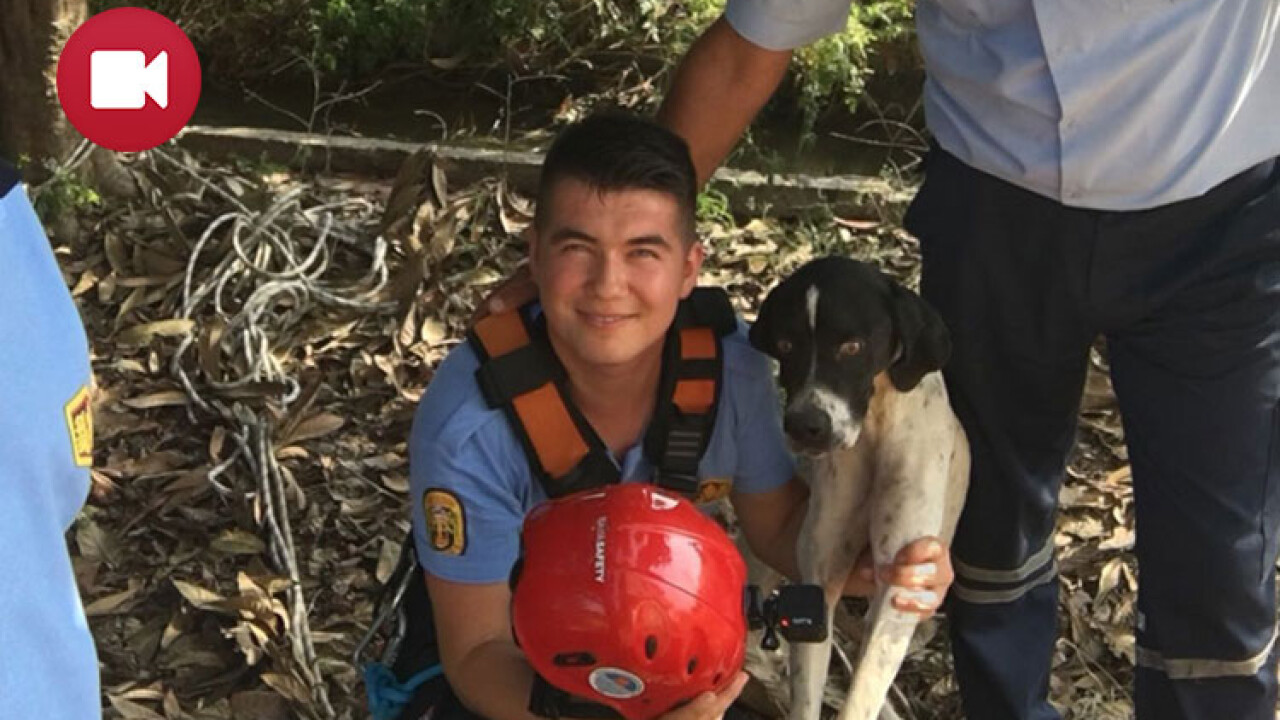 Öte yandan itfaiye ekibinin köpeği kurtarma anları da kask kamerası tarafından saniye saniye görüntülendi. Görüntülerde köpeğin, ekiplerin geldiğini görünce mutluluktan oyun oynamaya çalıştığı görüldü.