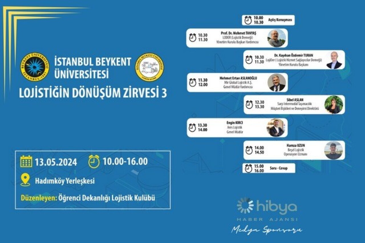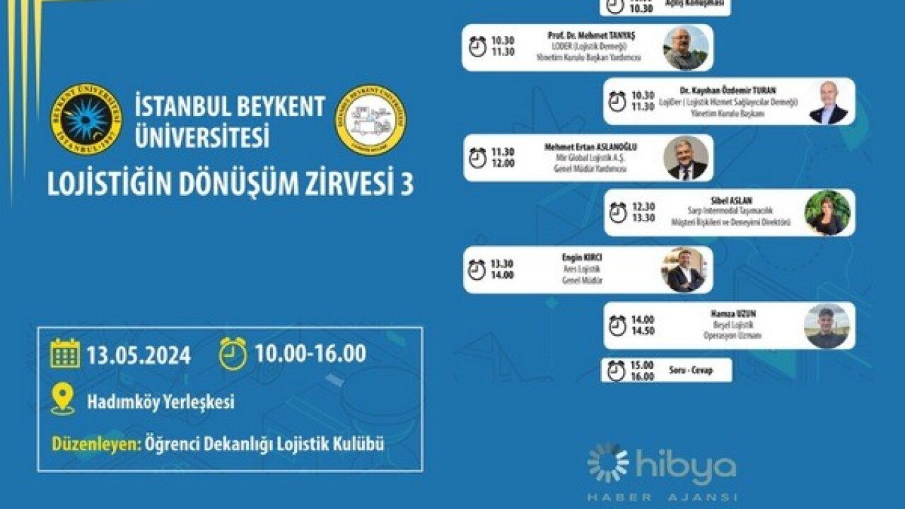 İstanbul Beykent Üniversitesi Öğrenci Dekanlığı Lojistik Kulübü tarafından düzenlenecek “Lojistiğin Dönüşümü Zirvesi 3” etkinliği 13 Mayıs Pazartesi saat 10.00-16.00’da Hadımköy Yerleşkesi’nde gerçekleştirilecek.