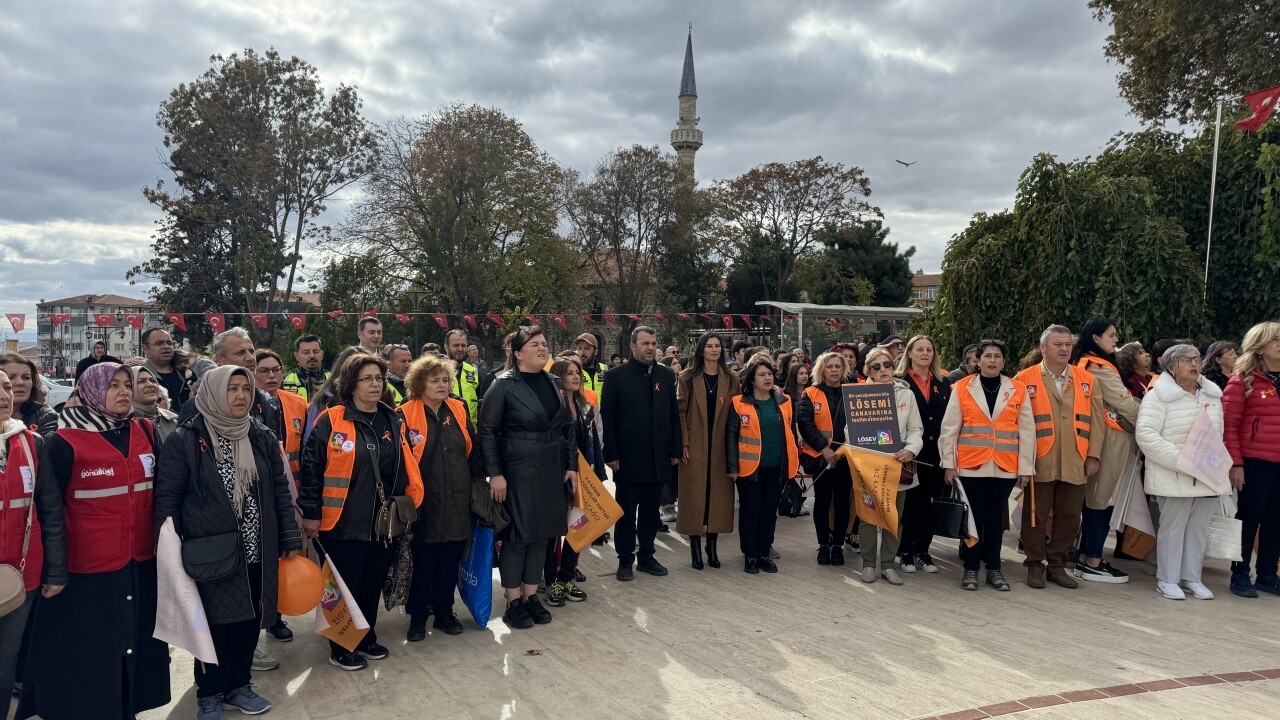 LÖSEV İstanbul Kurumlarla İletişim Sorumlusu Kübra Nur Çiçen, yaptığı konuşmada farkındalık yaratmak amacıyla kortej yürüyüşü organize ettiklerini söyledi.