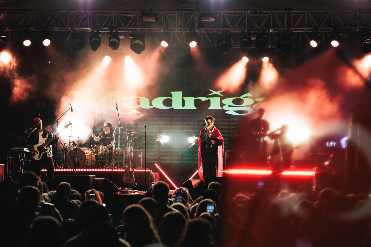 Anıl Erdem Cevizci (vokal ve elektro gitar), Ceyhun Kaan Karakaş (elektro gitar), Kaan Alıcı (bas gitar), Burak Emir Kamacı (klavye ve geri vokal) ve Sanlı Akgün'den (davul ve geri vokal) oluşan Madrigal, enerjinin bir an bile düşmediği konser boyunca Cumhuriyet coşkusu yaşattı.
